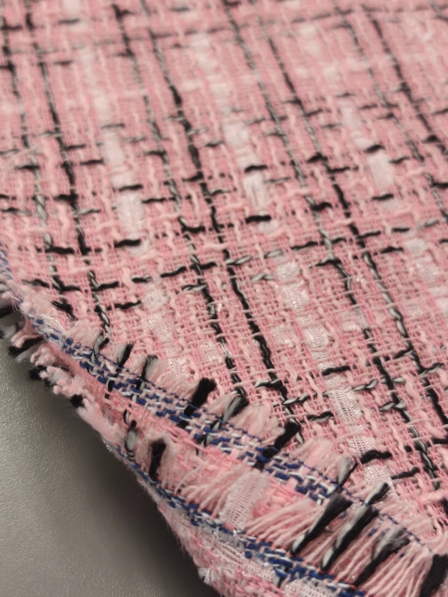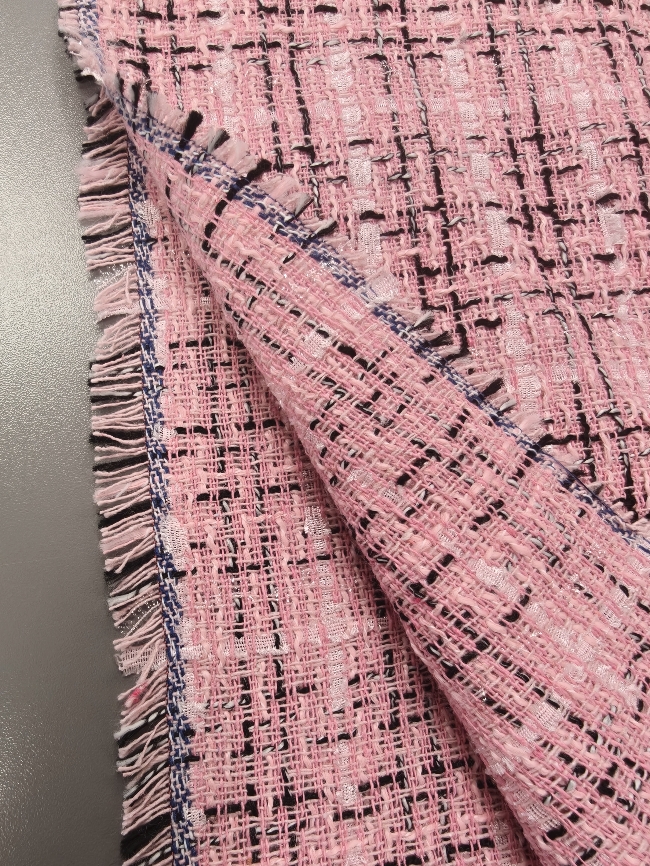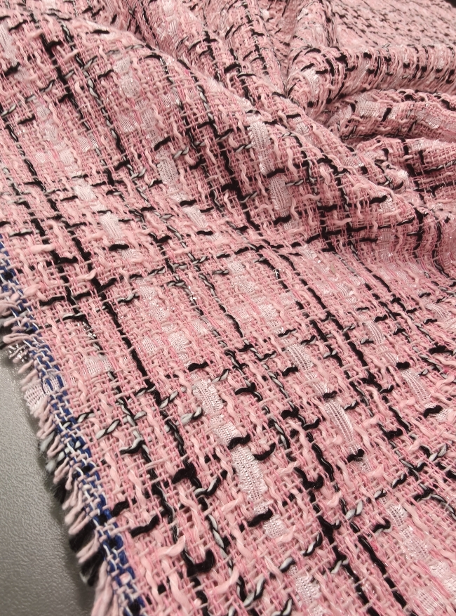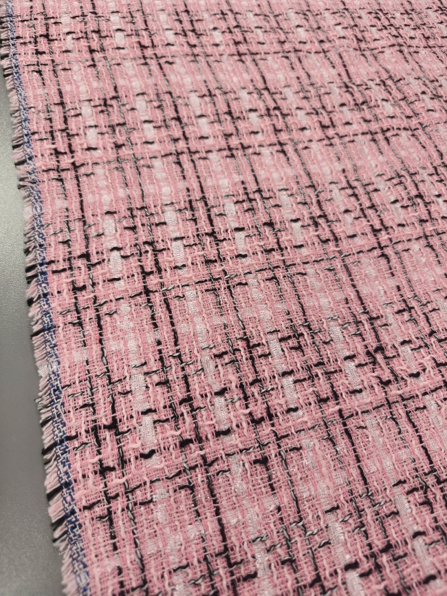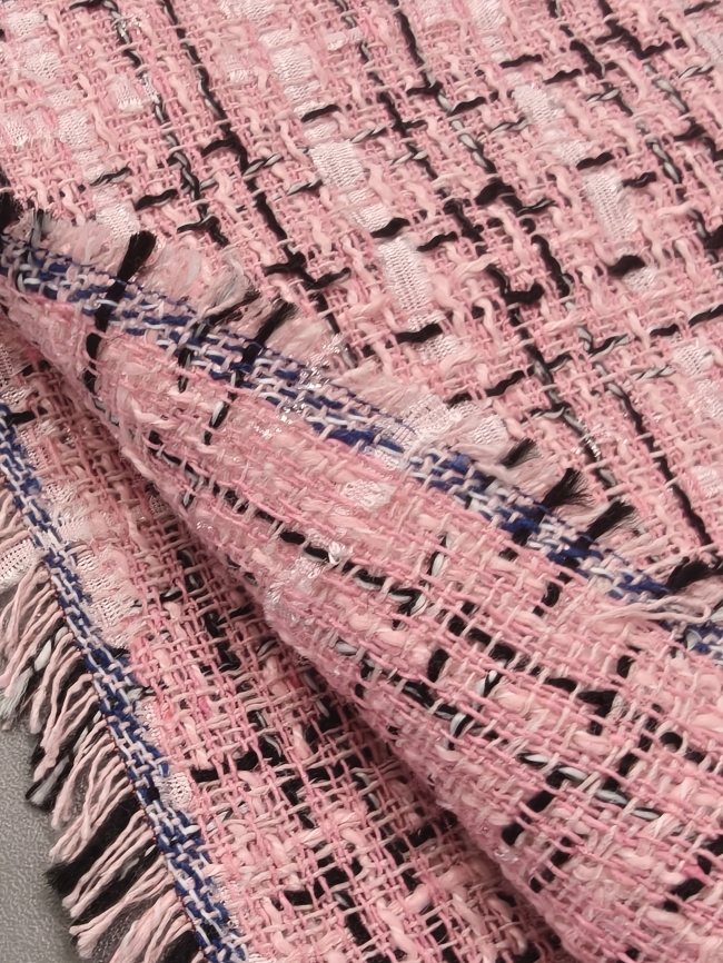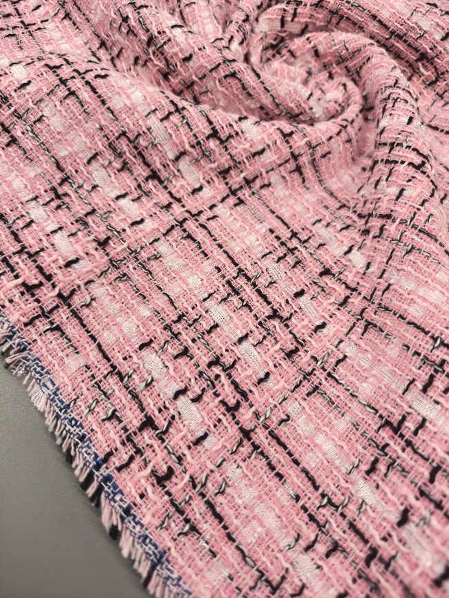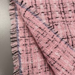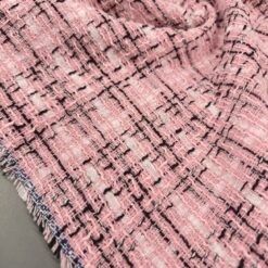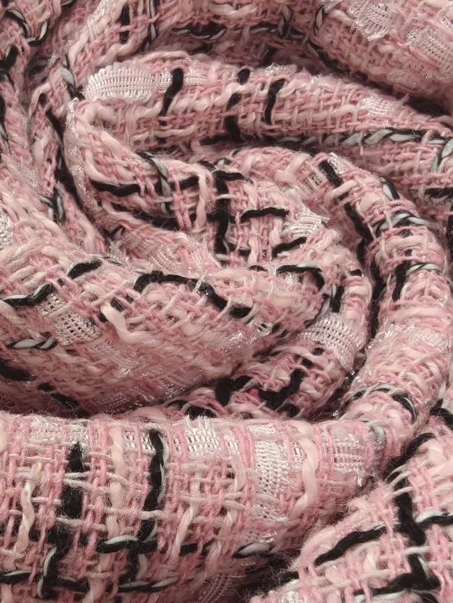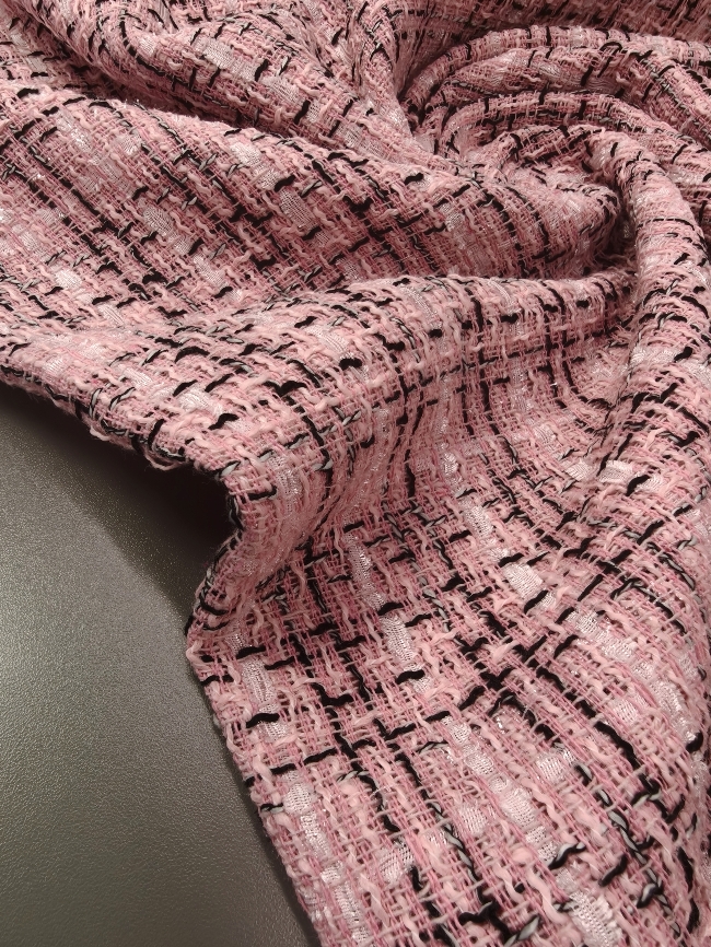 ⭐ Eleganten bouclé v nežno roza s črnimi povdarki – popoln za modne kostime, suknjiče (290 g/m²) ZADNJI KOS 2,50 m / 24,50 €
