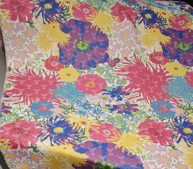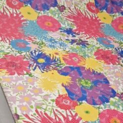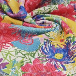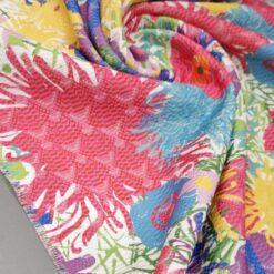 Razkošen cvetlični žakard z izrazitim večbarvnim prepletom izstopa po globini vzorca in vizualni polnosti. Tkanina deluje bogato, urejeno in hkrati živahno, zato je primerna za projekte, kjer je pomemben močan vizualni učinek in obstojnost oblike. Žakardna struktura daje materialu stabilnost in lep padec, vzorec pa ostaja jasno viden z obeh strani.
