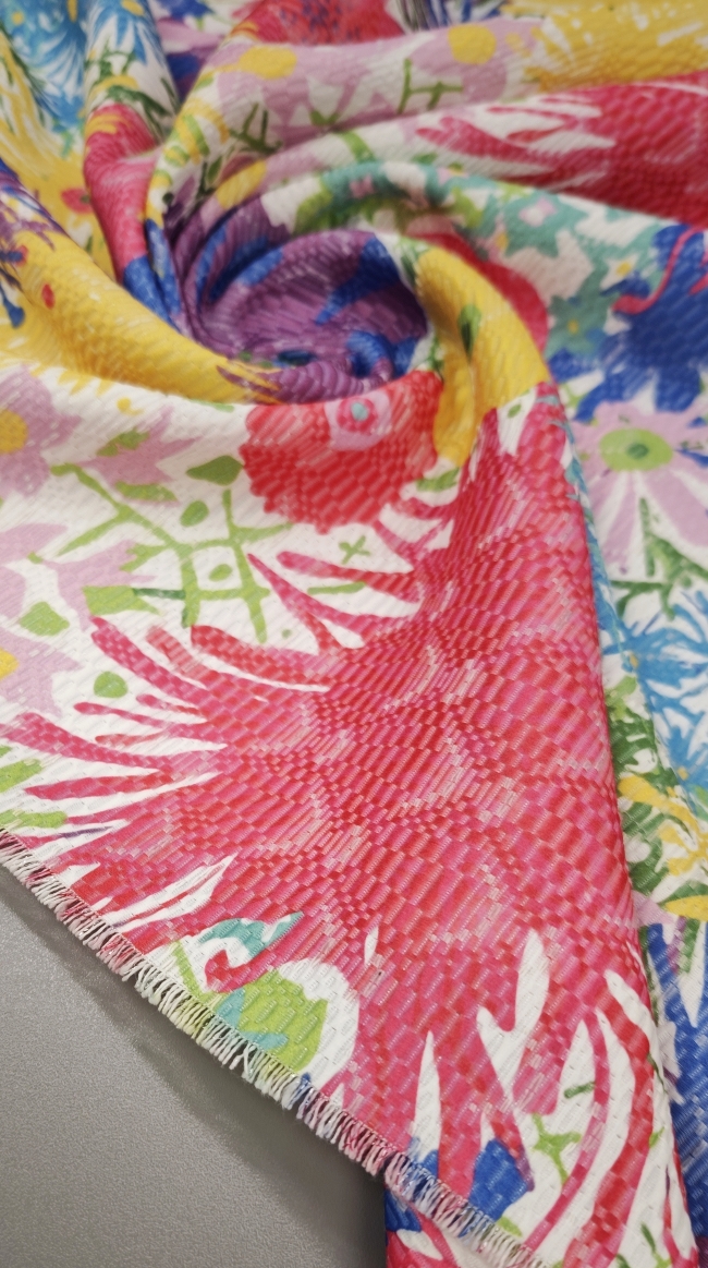 Tkanina deluje kakovostno že na pogled, v uporabi pa daje občutek urejenosti in trajnosti. Idealna izbira za kolekcije, kjer je poudarek na vzorcu, barvi in prepoznavnem videzu, ki pritegne pozornost in daje izdelku dodano vrednost.