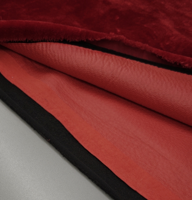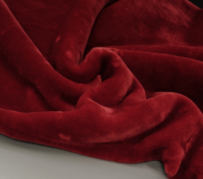 Razkošje, ki ga začutite na prvi dotik. To ekskluzivno obojestransko krzno združuje gosto, mehko rubinasto rdeče krzno na eni strani in pristno usnjeno površino na drugi strani. Izjemna teža 820 g/m² mu daje prestižen občutek, vrhunsko toploto in dolgo življenjsko dobo.