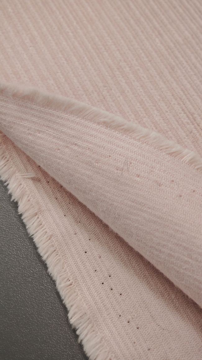 Ta čudovit bombažni žamet v nežno roza odtenku navduši s svojim mehkim oprijemom in rahlo elastičnostjo, ki omogoča izjemno udobje pri nošenju. Zaradi svoje gostote in kakovostne strukture lepo pade in daje oblačilom prestižen videz.