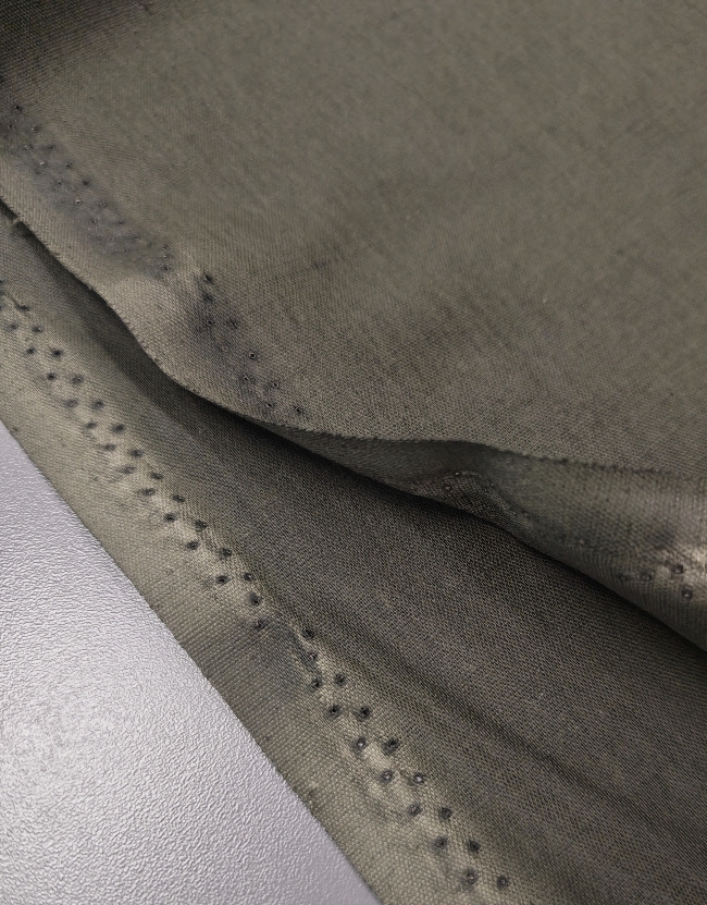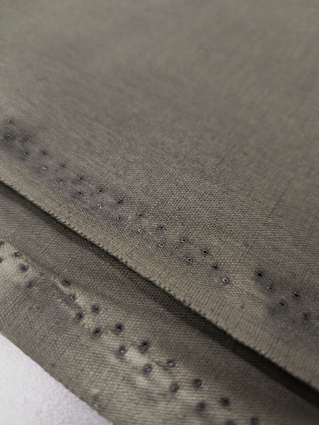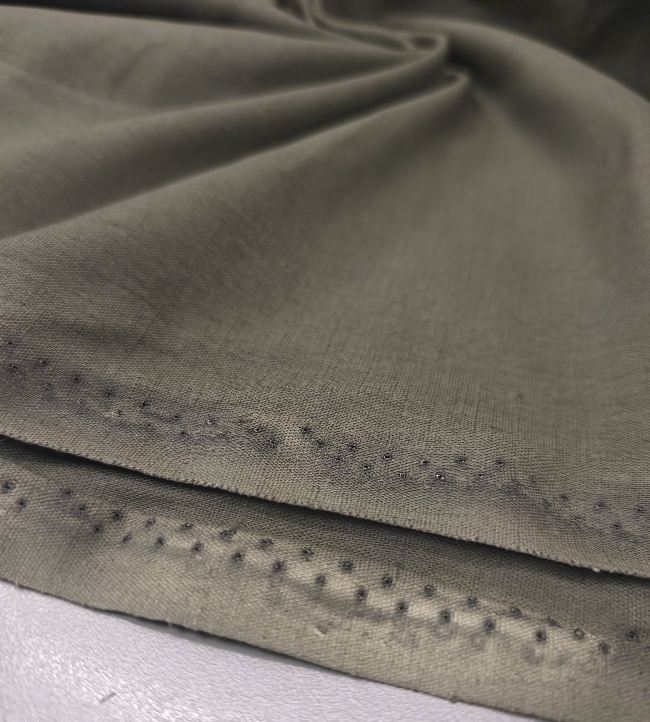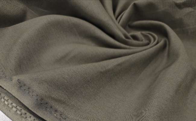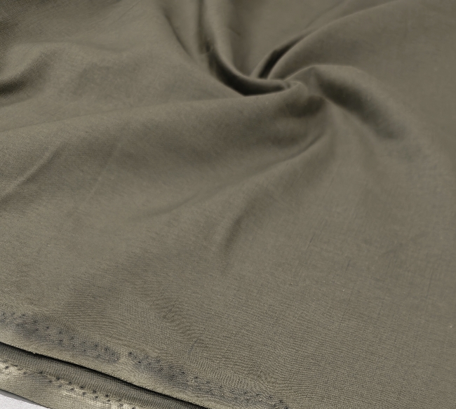 Lahka, zračna tkanina z videzom lana v naravni olivno zeleni barvi. Ima rahlo strukturo, prijeten občutek na koži in se manj mečka kot klasičen lan.