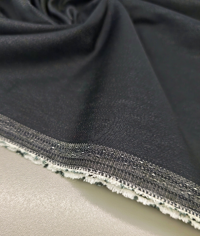 Tanek jeans v zelo temno modri barvi s prepoznavnim GS vzorcem. Material je lahek, prijeten na otip in primeren za oblačilne projekte, kjer je zaželen klasičen videz jeansa, vendar brez velike teže.