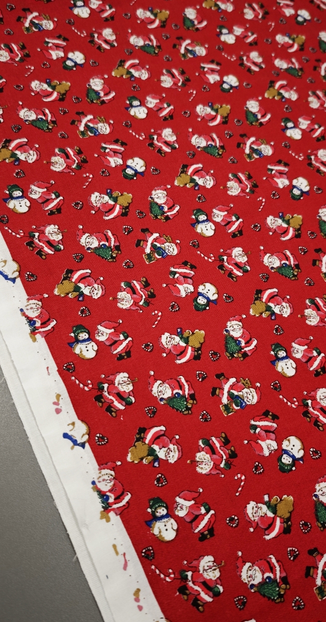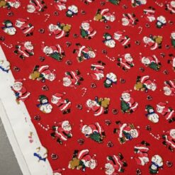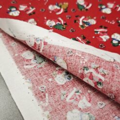 Božični poplin – rdeč z božički je mehak, zračen in zelo prijeten material, ki se pri šivanju odlično obnaša. Primeren je za praznične srajce, pižame, krila, obleke, otroška oblačila, pentlje ter praznične namizne dekoracije.