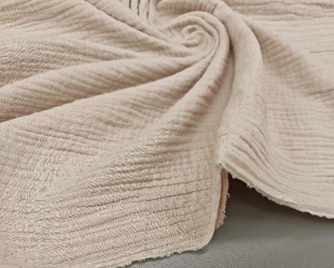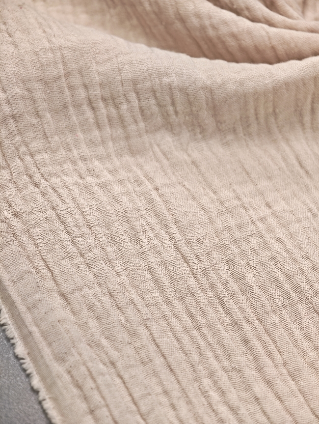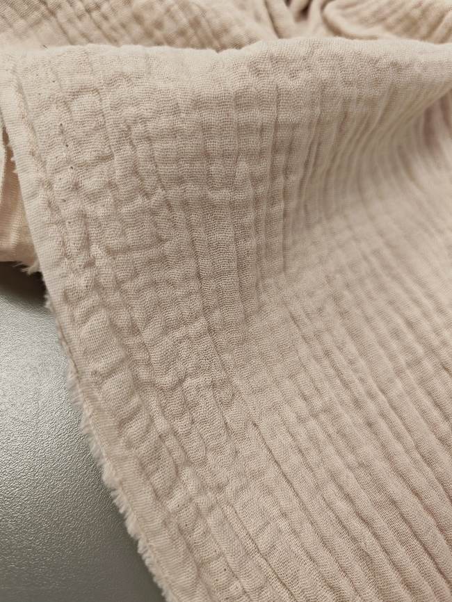 Mehka, zračna in prijetna na koži. Dvoslojna tetra v bež natur odtenku je odlična izbira za otroška oblačila, poletne srajce, oblekice, rutke, pajacke in lahke odejice.