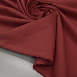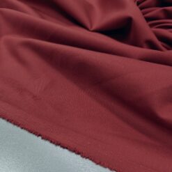 Bordo rdeče bombažno platno je trpežna, kompaktno tkana tkanina z naravnim otipom in stabilno strukturo. Barva je globoka, enotna in primerna za jesensko-zimske kolekcije ter elegantne kombinacije skozi vse leto.