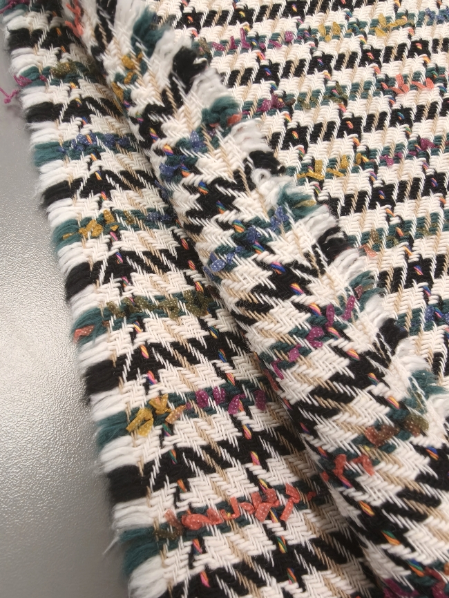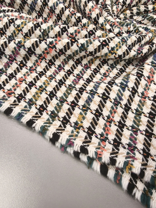 Ta večbarvni bouclé v karo vzorcu je odlična izbira za modne suknjiče, elegantne jakne, retro kostime ali plaščke s karakterjem. Bogata struktura in klasičen videz poskrbita za prefinjen videz ter topel, udoben občutek v hladnejših dneh.