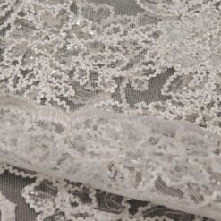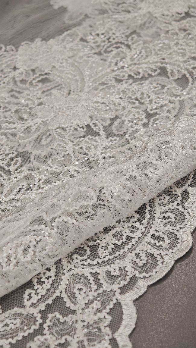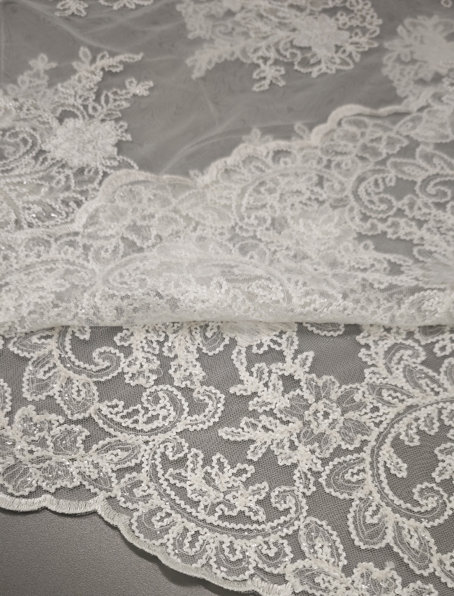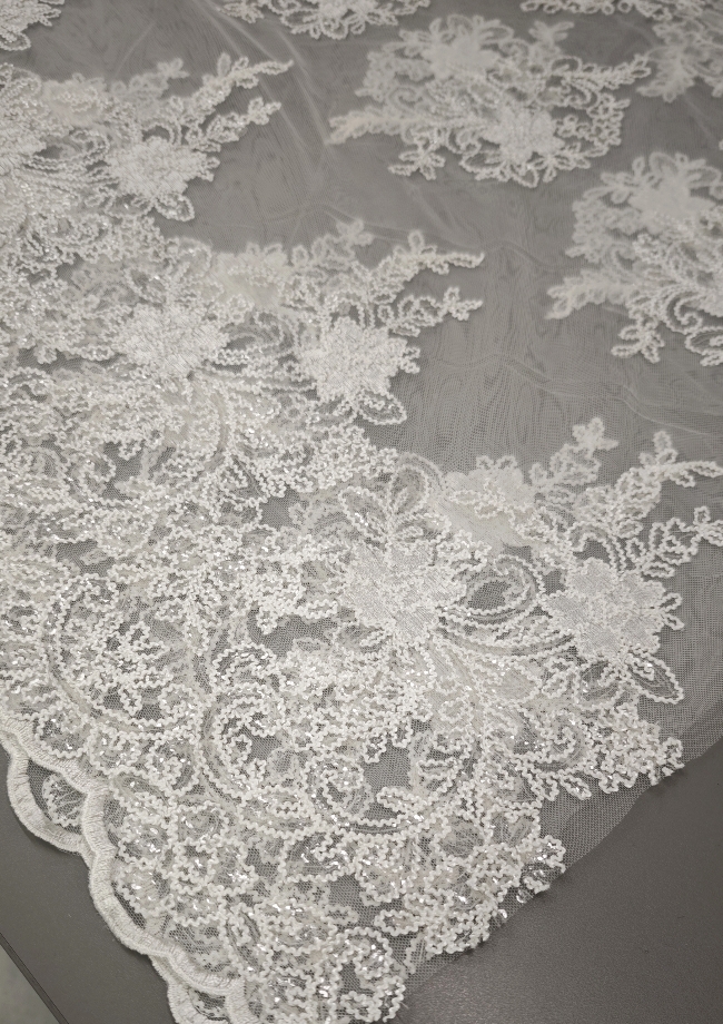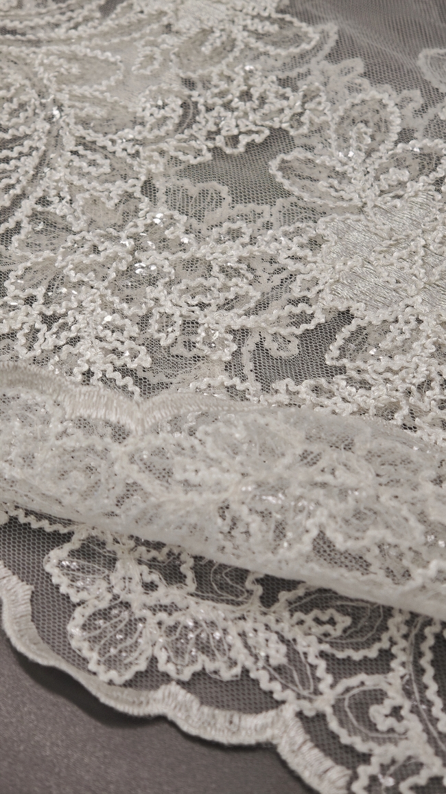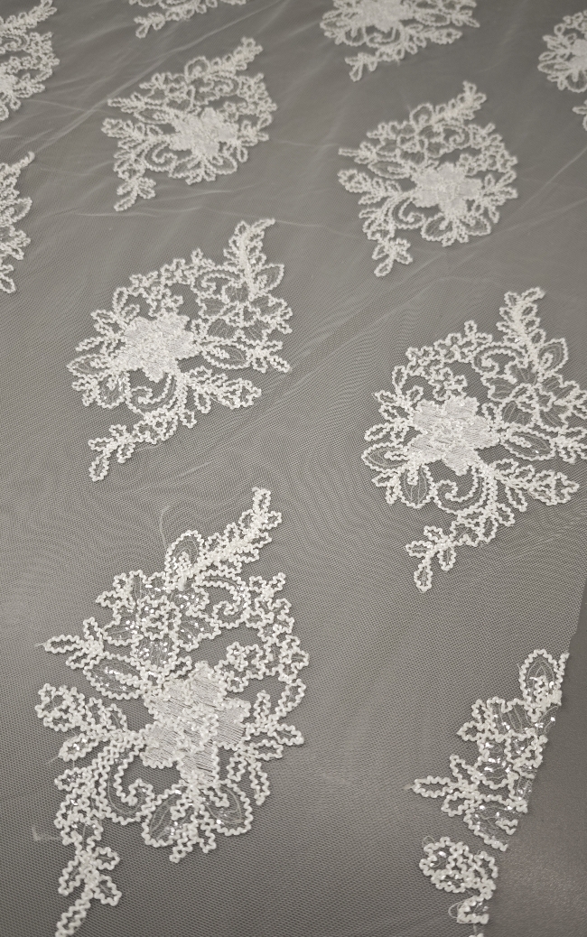 🎁 Luksuzna ivory bela čipka na tilu z bogatim zaključkom – popolna za poročne obleke i svečane kreacije