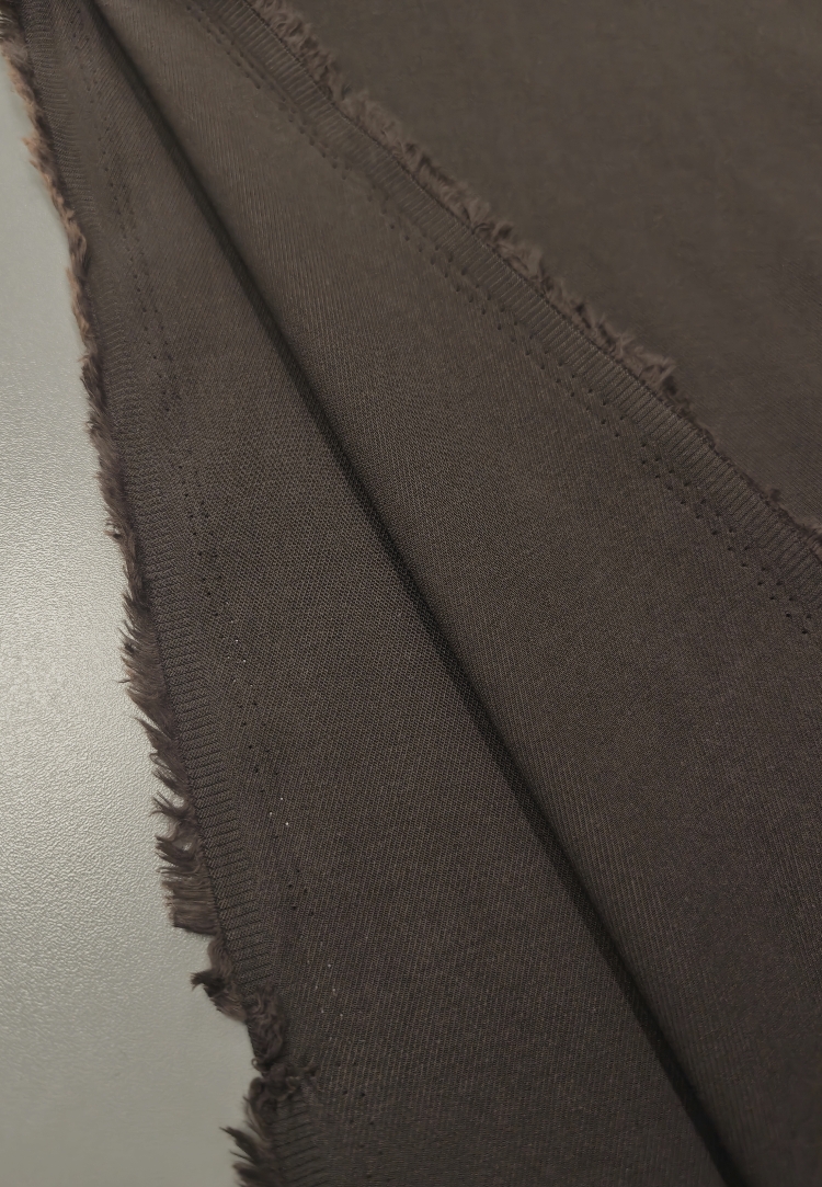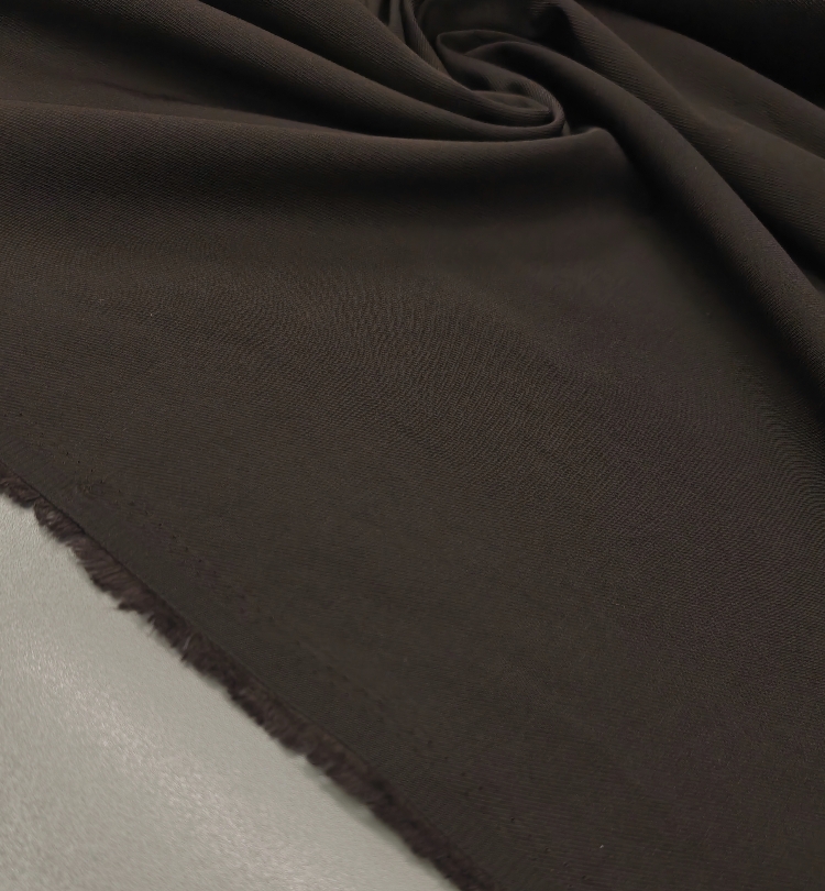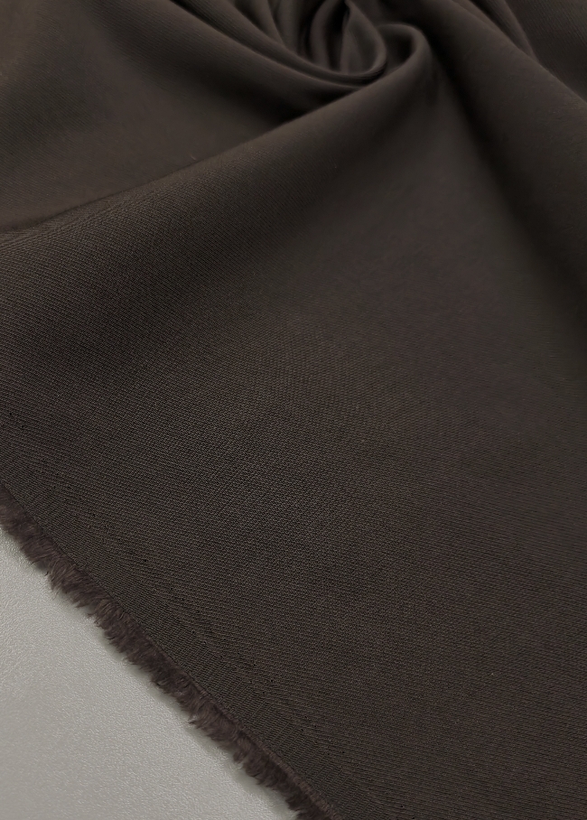 Kompaktna kostimska tkanina v globoki čokoladno rjavi barvi z dodatkom elastana. Teža 280 g daje materialu lepo strukturo, primerna za bolj resna, poslovna oblačila.