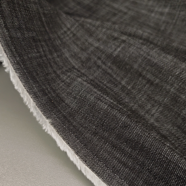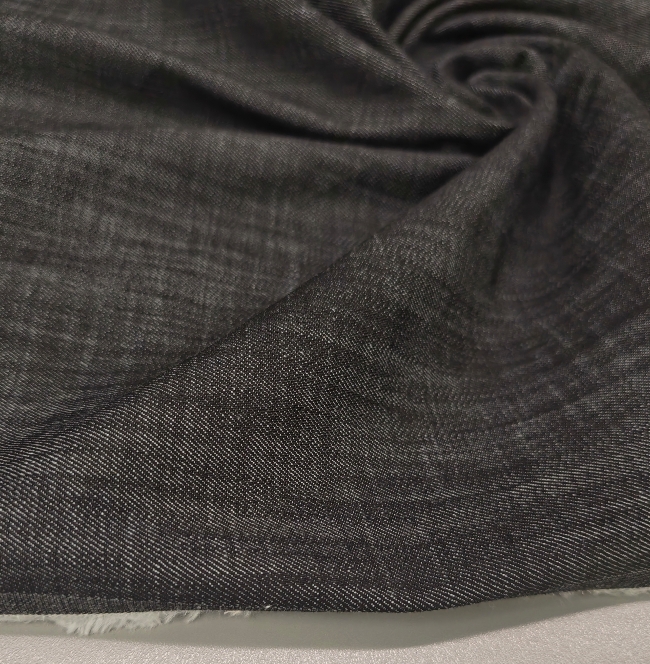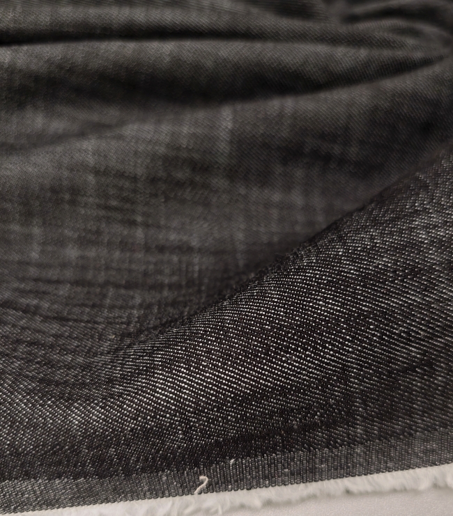 Močan črn jeans z gosto, kompaktno strukturo. Težje oblačilno blago, primerno za kavbojke, jakne, krila, hlače in torbe. Čvrsta tkanina, primerna za trpežna oblačila.
