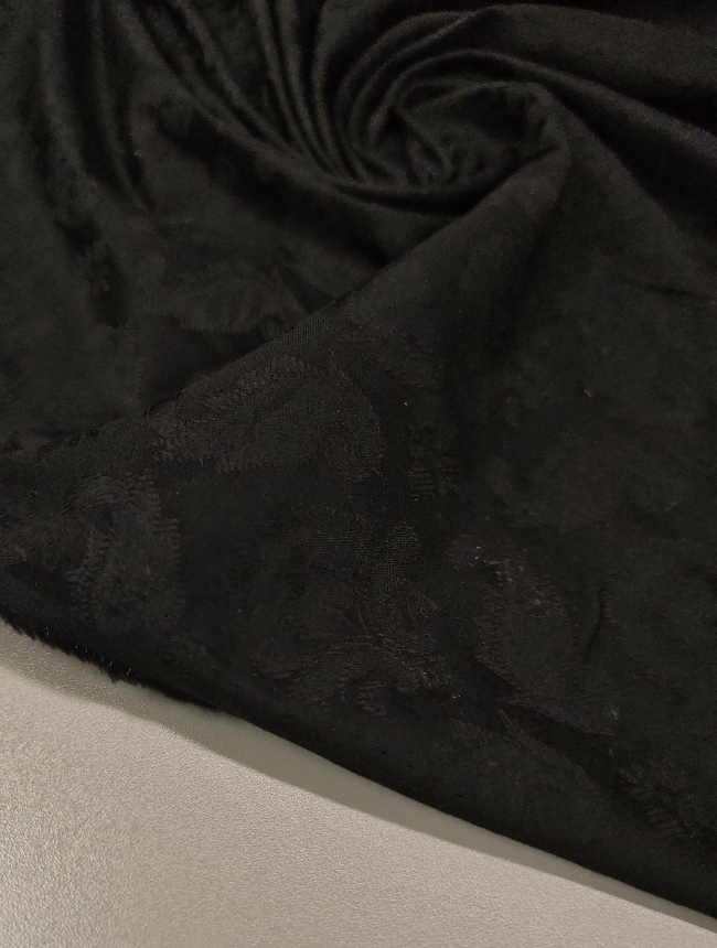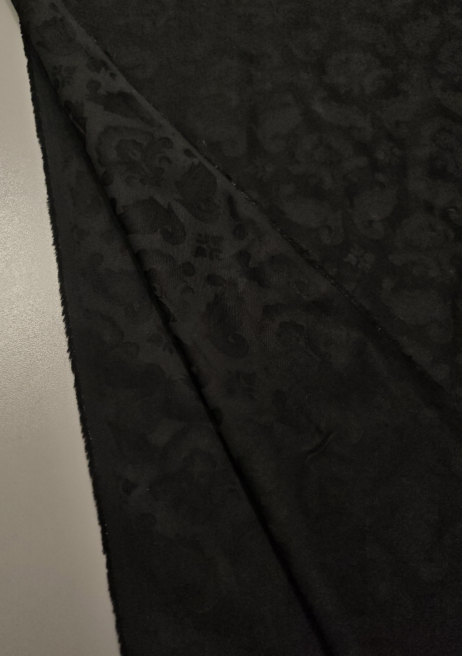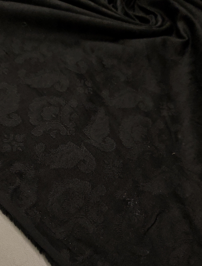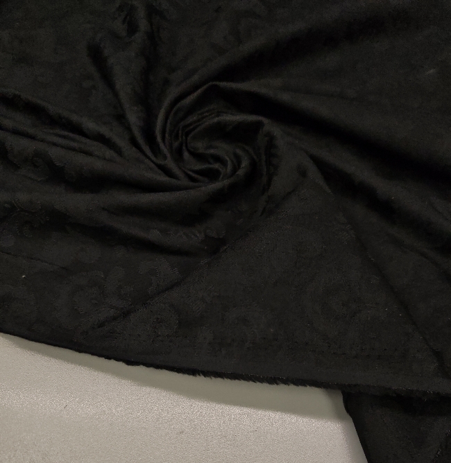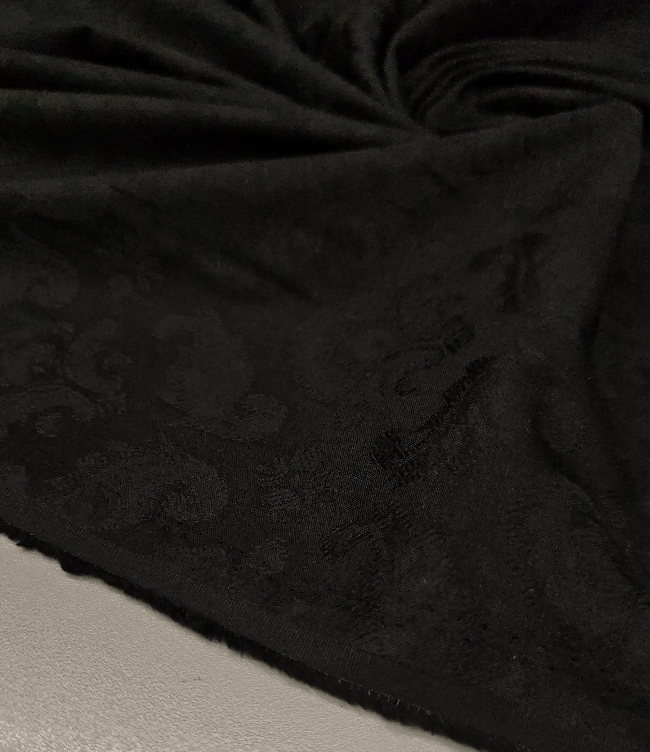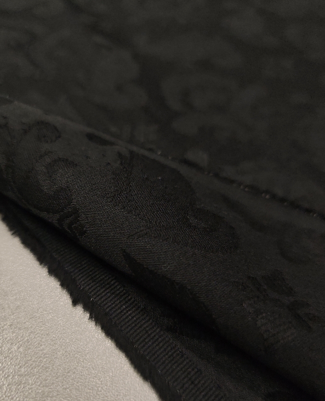 Črn bombažni žakard s klasičnim reliefnim vzorcem