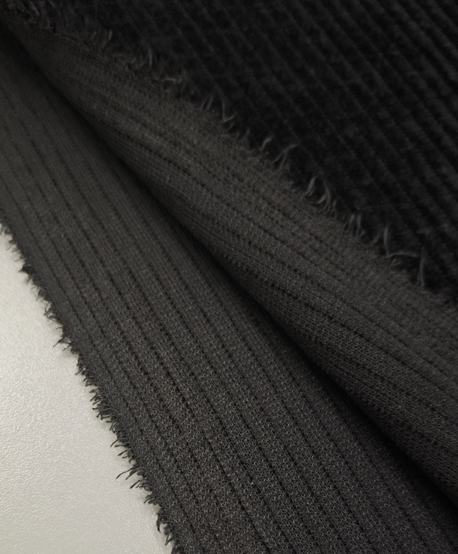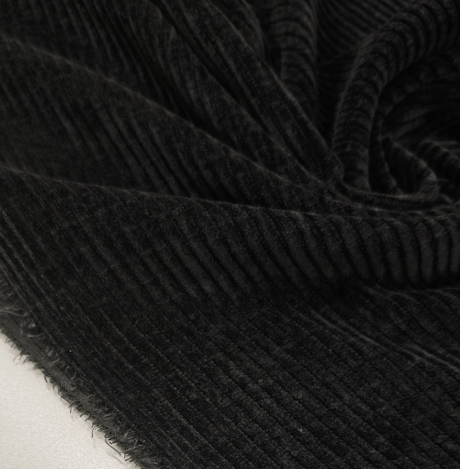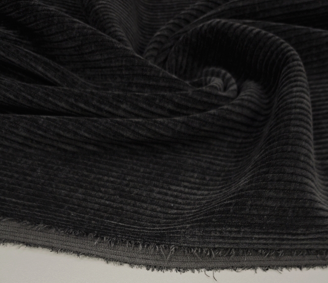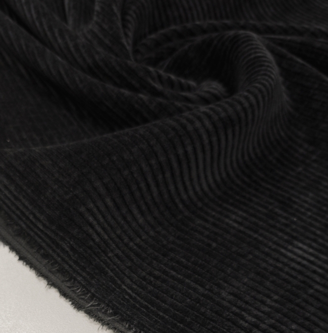Črn rebrasti žamet – rahlo elastičen, mehak in topel (410 g/m²) ZADNJI KOS 3 m / 24,50 €