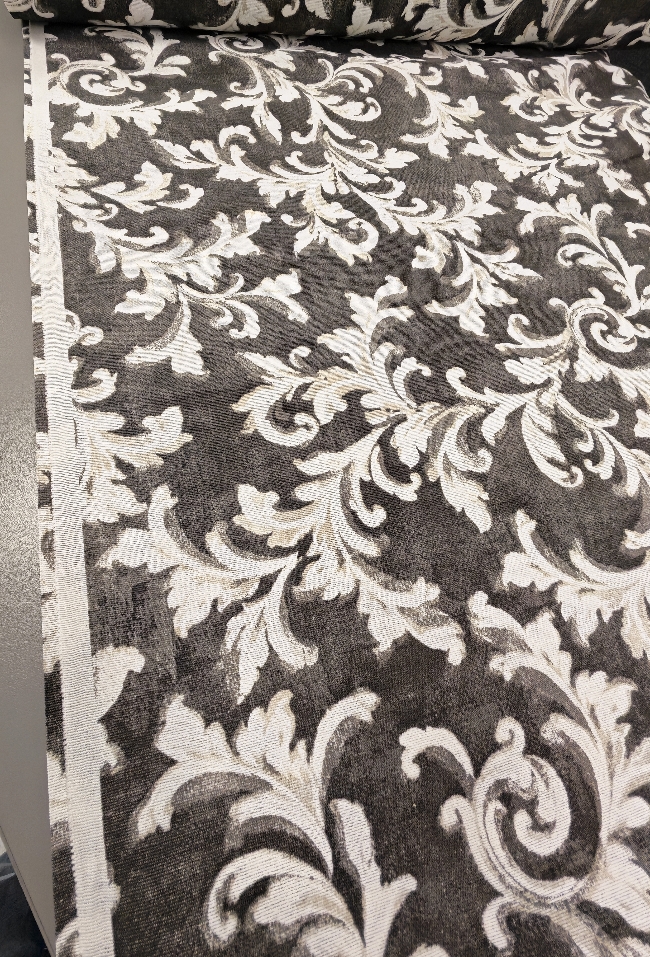 Izrazit baročni ornament v črno-beli kontrastni izvedbi, ki takoj ustvari eleganten in izrazit videz prostora.
