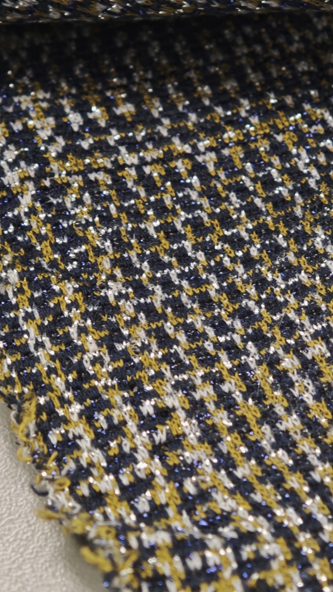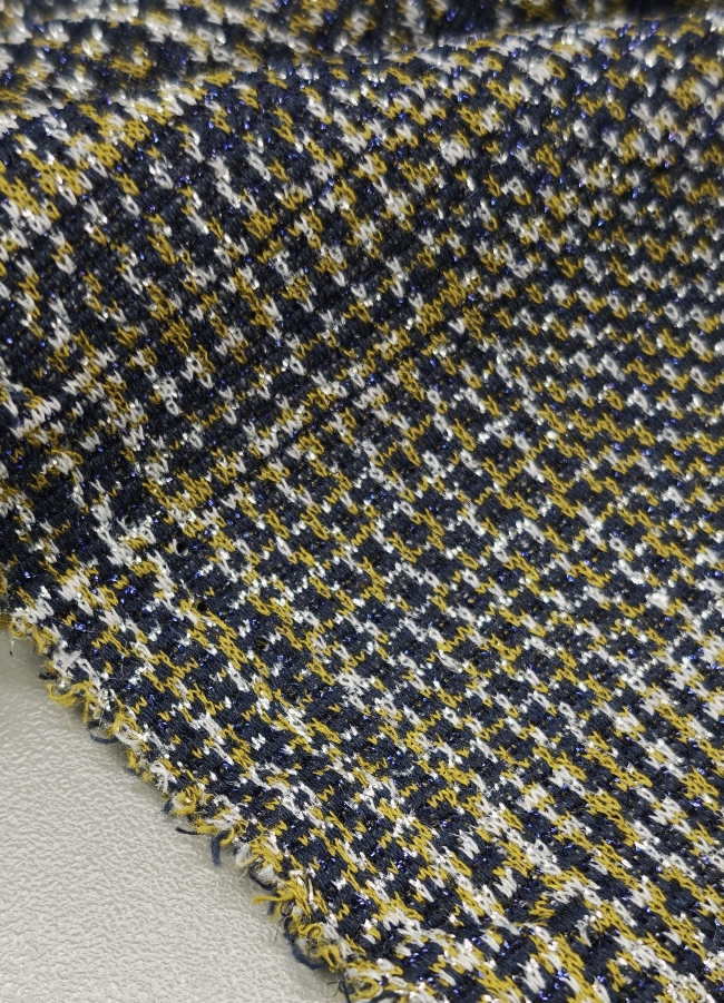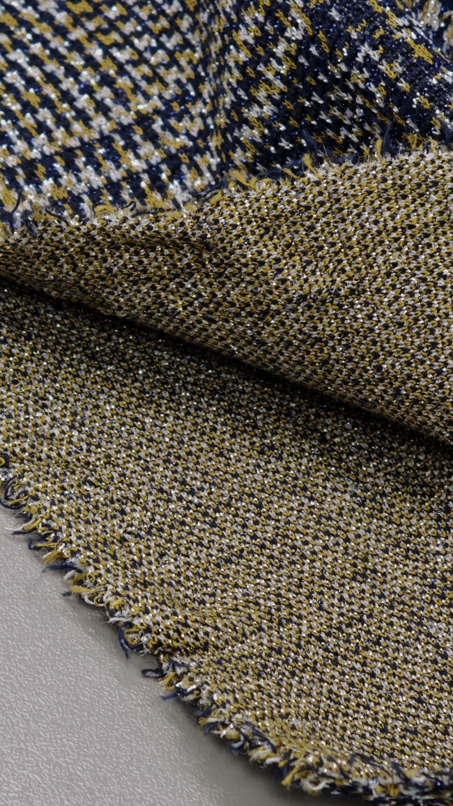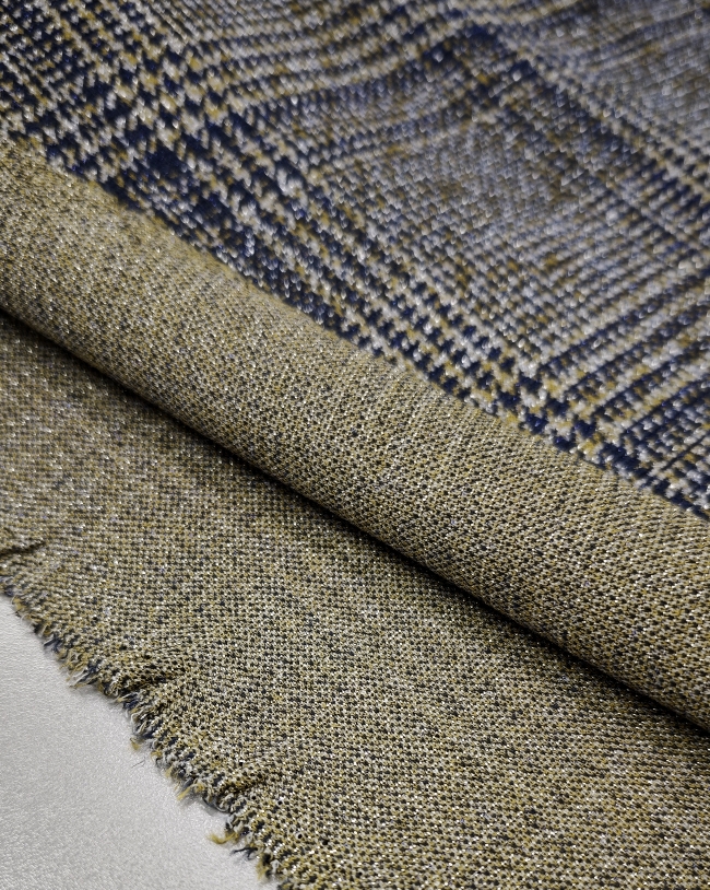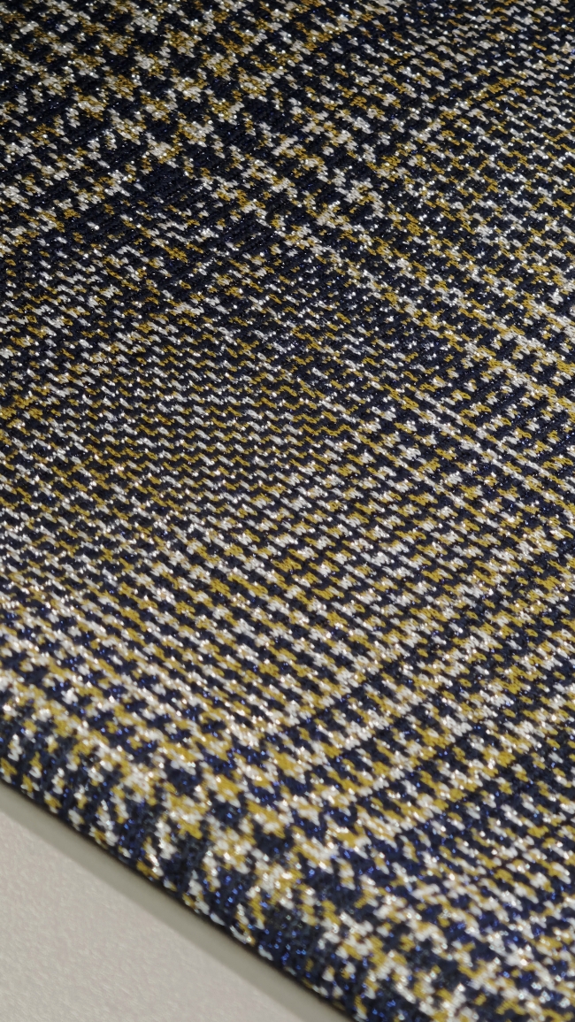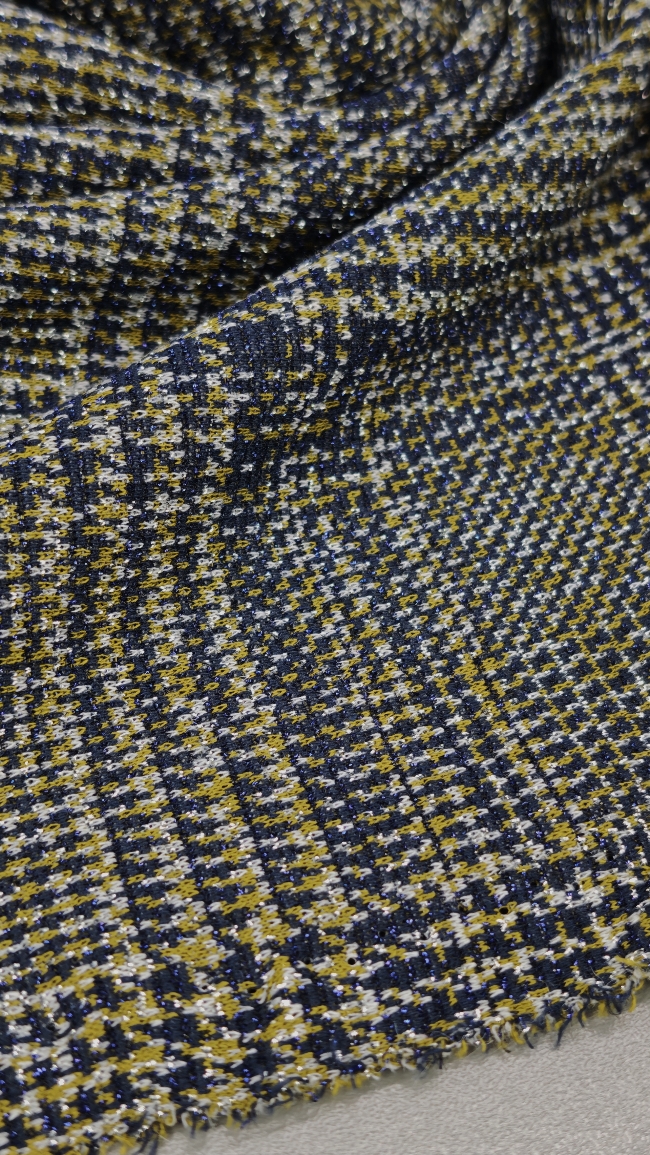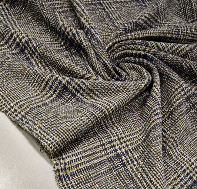 Elastičen jersey z modrim karom in srebrnim lurexom