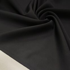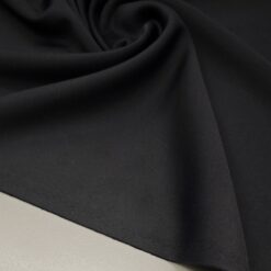 Elegantna in sodobna scuba tkanina v globoko črnem odtenku je popolna izbira za modne kreacije, kjer želiš kombinirati udobje, elastičnost in dovršen videz. Material je mehko oprijemljiv, gosto pleten in se lepo prilega telesu – zato je idealen za obleke, suknjiče, krila, pa tudi za modne hlače in elegantne topke.