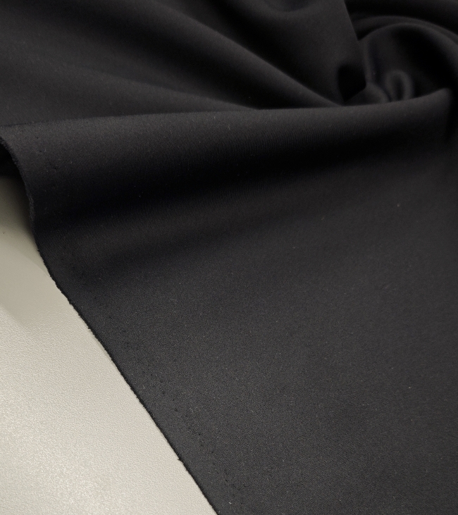 Tkanina je elastična v obe smeri, kar zagotavlja popolno prileganje in udobje pri nošenju. Zaradi svoje kompaktne strukture lepo drži obliko in ne proseva, kar omogoča izdelavo krojev, ki poudarijo linijo telesa.
