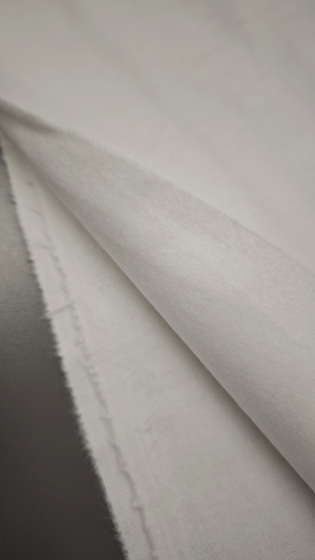 Ta mehka bela flanela je ustvarjena za popolno posteljnino – toplo, prijetno in izredno nežno na koži. Gre za tisto vrsto tkanine, ki jo potegneš čez posteljo in takoj naredi občutek domačnosti: mehka vlakna, rahlo puhast otip ter popolna belina, ki deluje čisto, sveže in elegantno v vsakem spalnem prostoru.