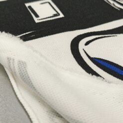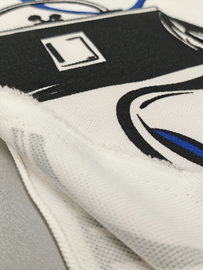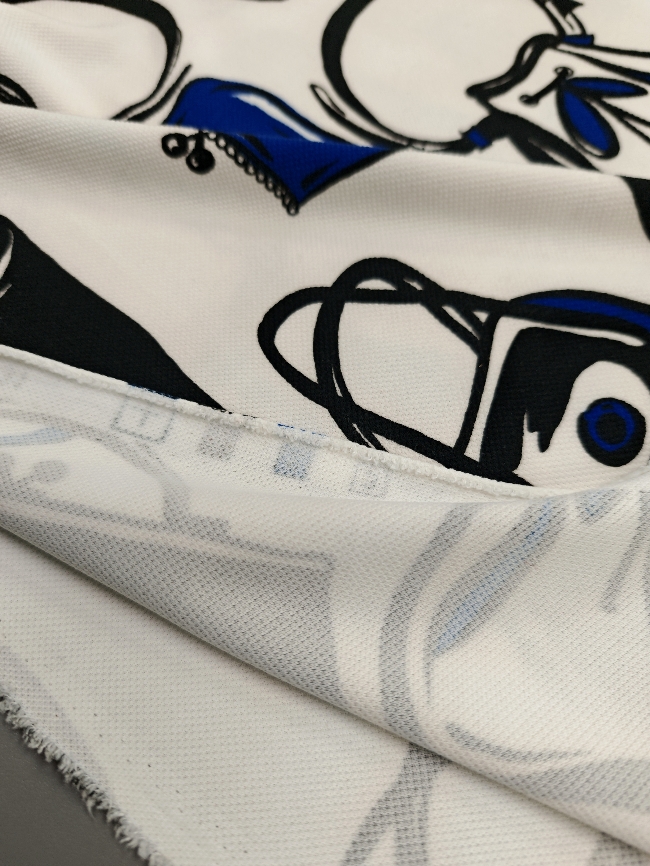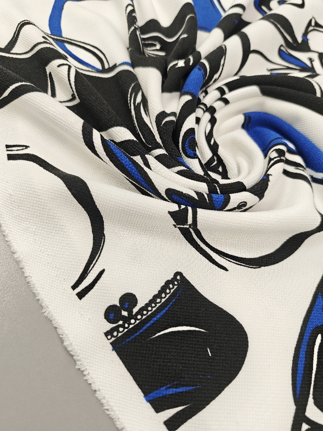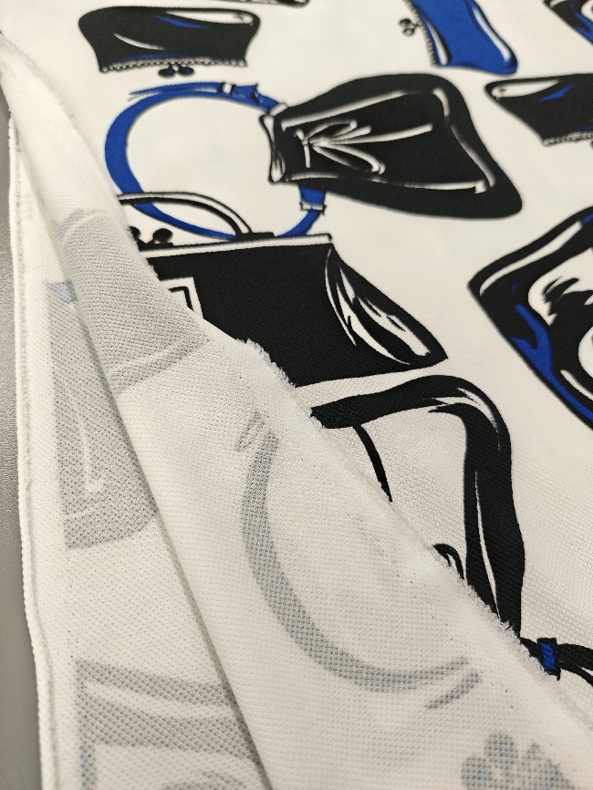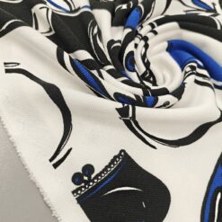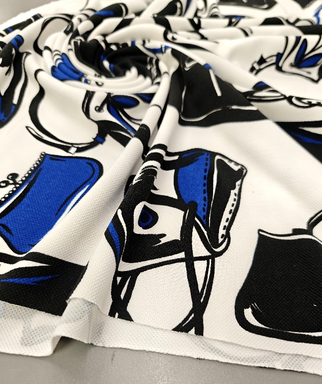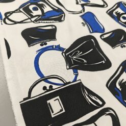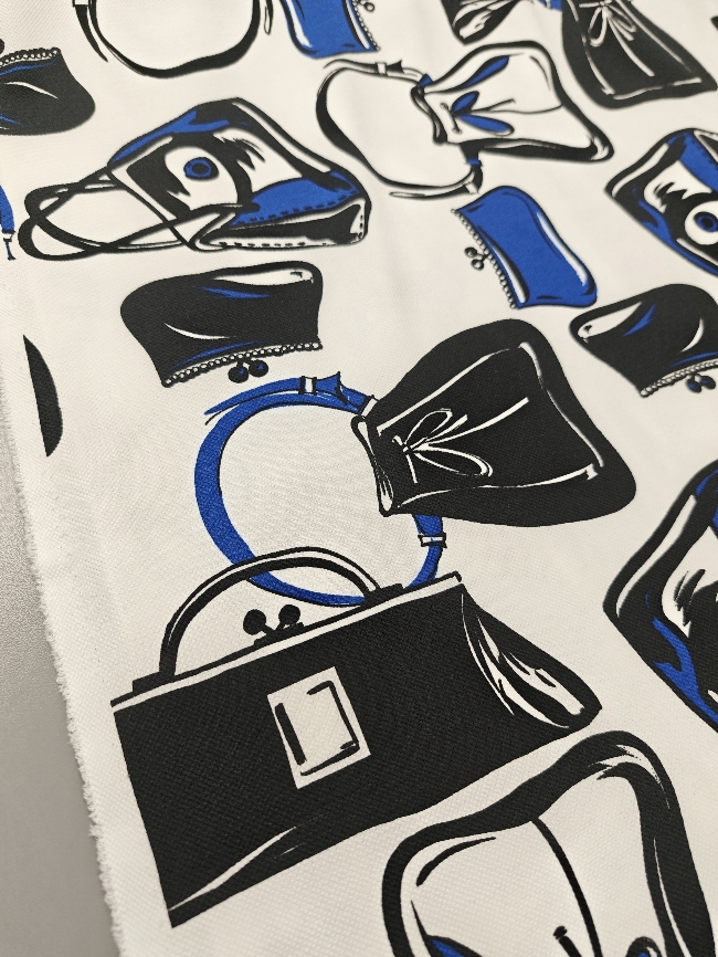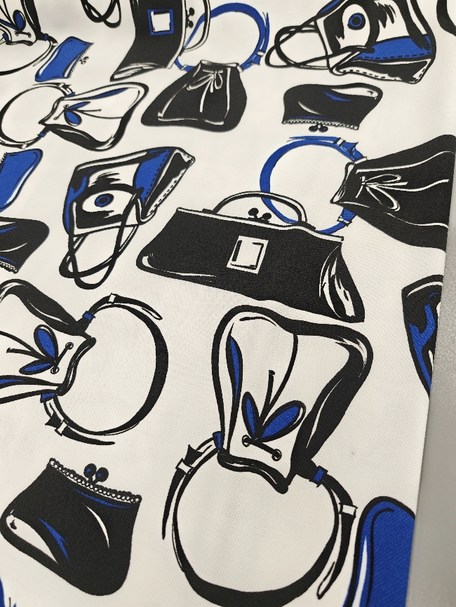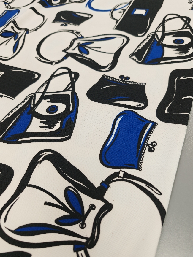 Jersey s potiskom modro-črnih torbic – trendovska izbira za modne kreacije
