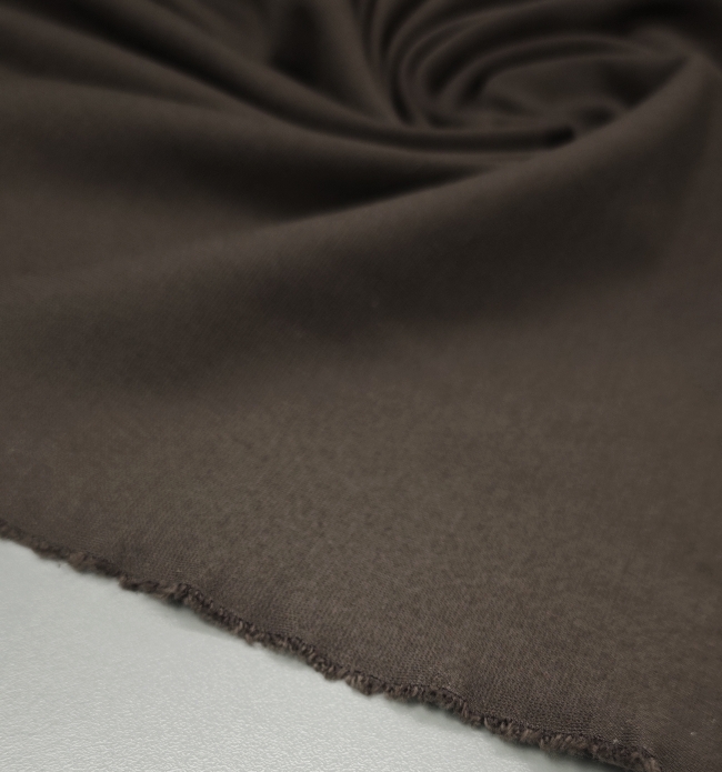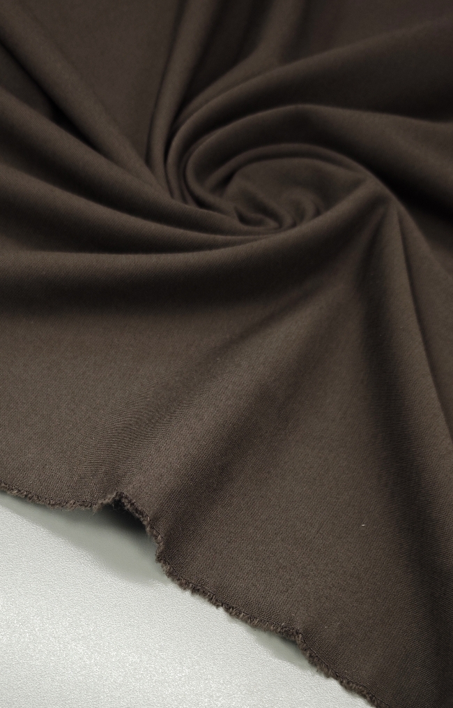 Punto Milano je prestižna kompaktna elastična tkanina, znana po svoji stabilnosti, polni strukturi in udobnem raztezanju. Temno rjava barva daje blagu pridih elegance in vsestranskosti, zaradi česar je idealna izbira za klasična in sodobna oblačila.