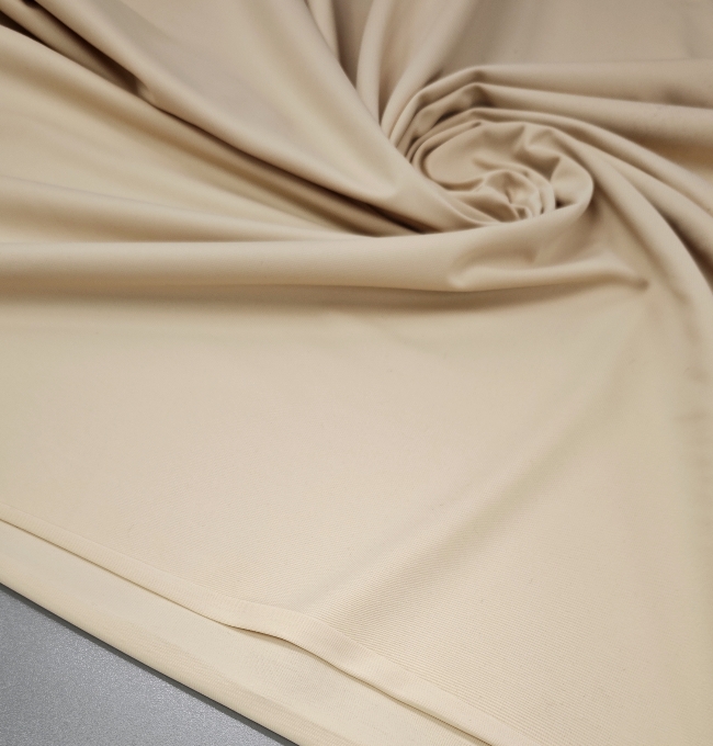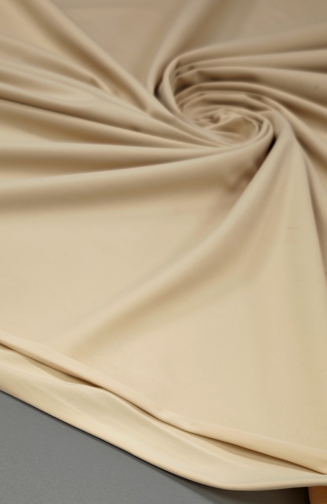 Lahkotna, zračna in gladka tkanina iz poliestra je idealna izbira za poletna oblačila, kjer si želite udobja in elegance. Jersey v nežni kožni barvi lepo pade, je prijeten na otip in se ne mečka.Je odličen za majice, topke, podloge, obleke, krila ali otroška oblačila.