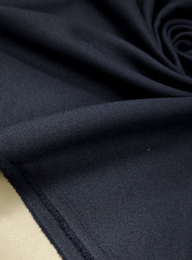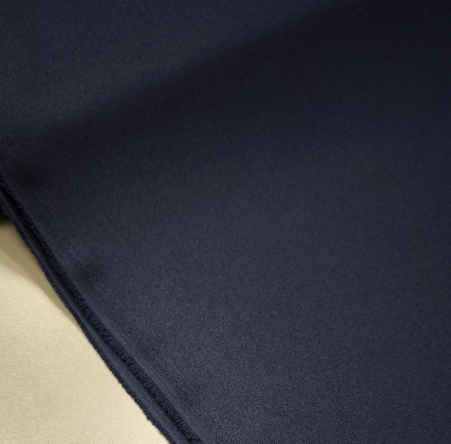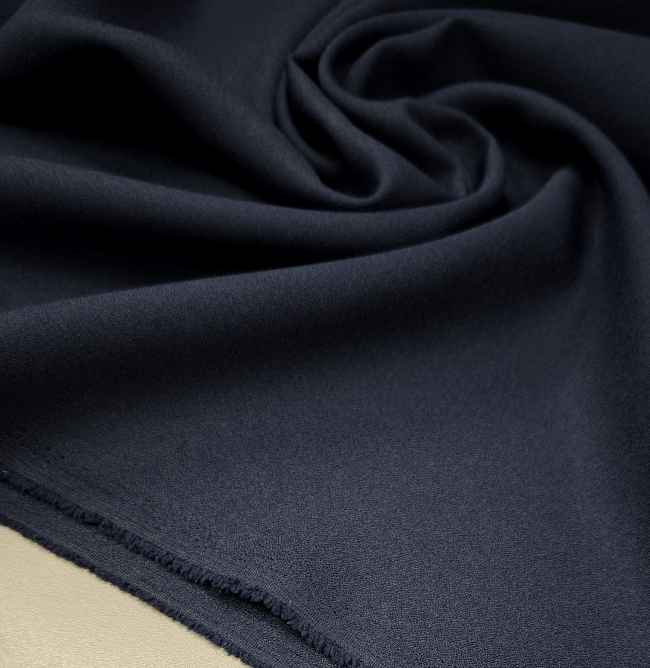Kakovostna kostimska tkanina z gladko, čisto površino in lepo padajočo strukturo. Krep cady je stabilen, prijeten na otip in primeren za urejene kroje, kjer je pomemben lep padec brez prosojnosti. Temno modra barva deluje resno, poslovno in zelo uporabno.
