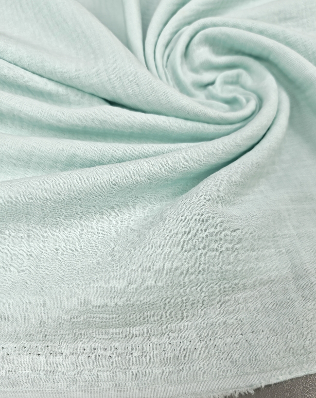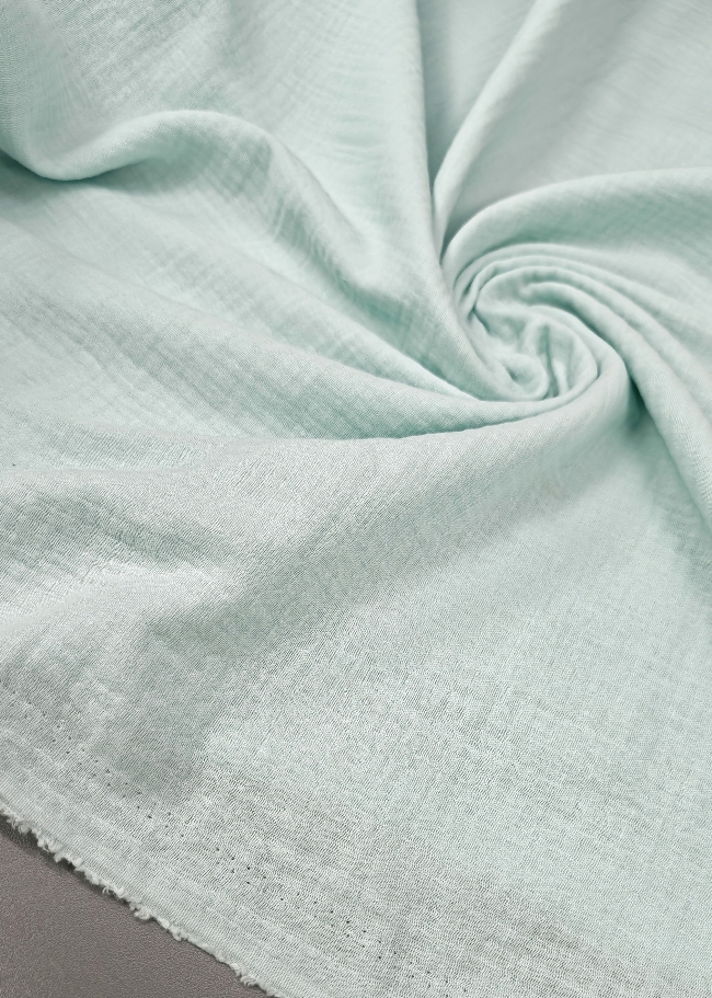 Mehka, zračna in prijetna na dotik. Dvoslojna tetra v nežni mint barvi je odlična izbira za otroška oblačila, poletne bluze, srajce, oblekice, rutke, odejice in dodatke za dom. Zaradi dveh plasti je bolj kompaktna kot klasična enoslojna tetra, a še vedno lahka in lepo pada.