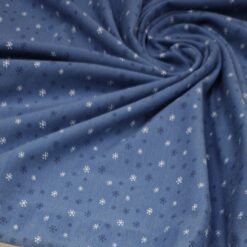 Ta moder bombažni jersey s snežinkami je popolna izbira za tople, mehke in udobne zimske kreacije. Prijetna raztegljivost, naravni občutek na koži in čudovit zimski motiv ga naredijo idealnega za vsakodnevno nošenje.