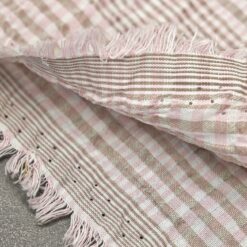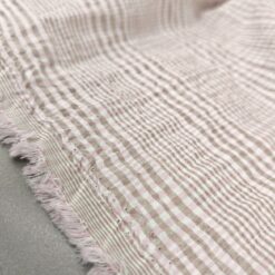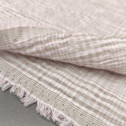 Nežno roza bombažna mečkana tkanina – drobni karo
