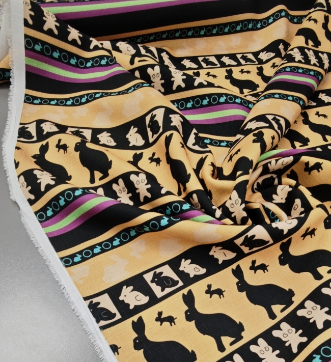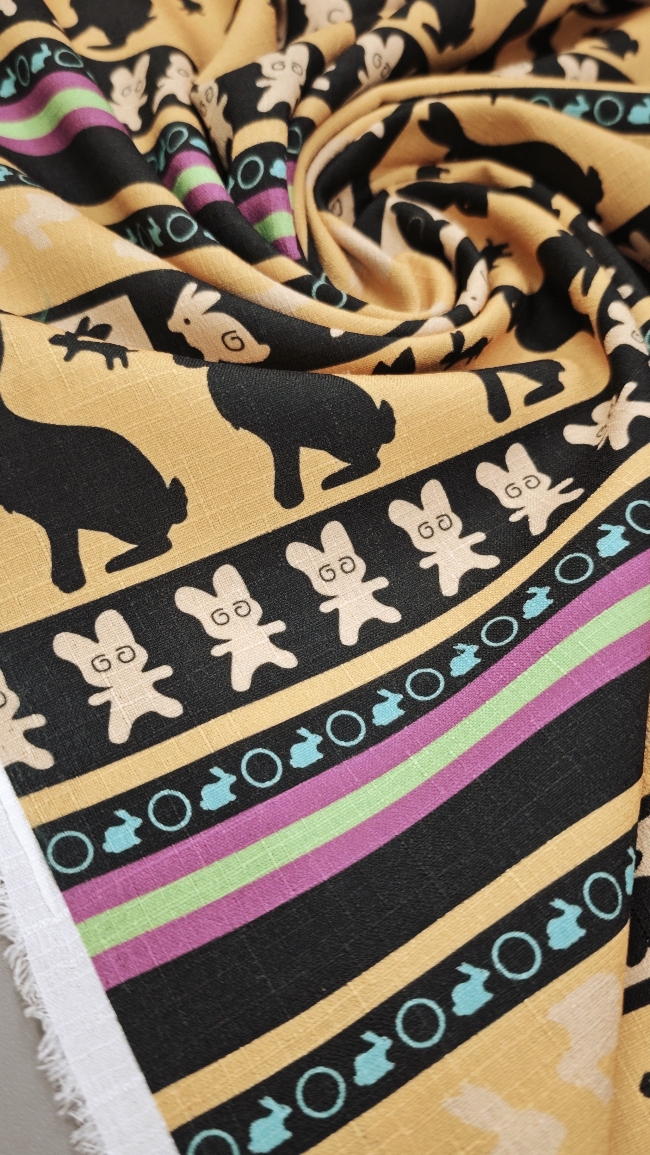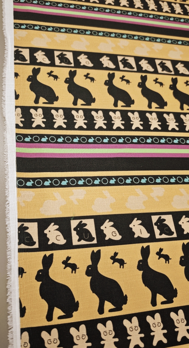 Tkanina lepo pade, se enostavno šiva in s svojim igrivim motivom vabi k ustvarjanju posebnih, ročno izdelanih kosov. Če iščeš nekaj, kar bo tvojim projektom dodalo značaj in toplino, je “Zajčja parada” prava izbira.
