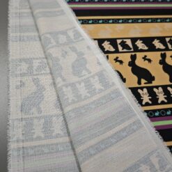 Igriva in očarljiva – “Zajčja parada” je tkanina, ki prinese nasmeh že ob prvem pogledu. Mehka, prijetna na otip in naravnega videza, s toplimi oker in bež odtenki ustvarja občutek domačnosti in topline.