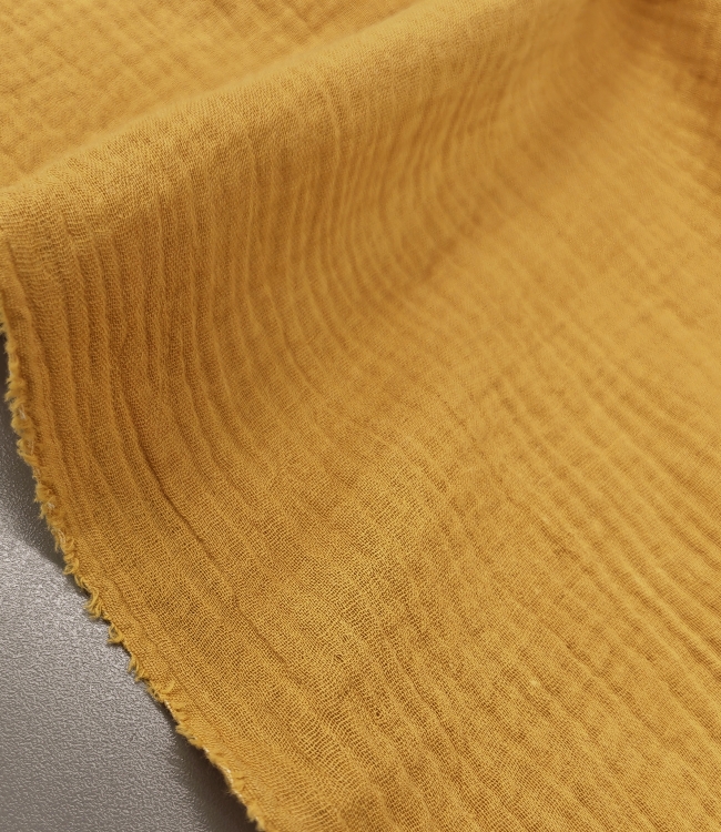 Mehka in zračna dvoslojna tetra v topli oker barvi. Naravna, prijetna na koži in dovolj kompaktna zaradi dveh slojev.