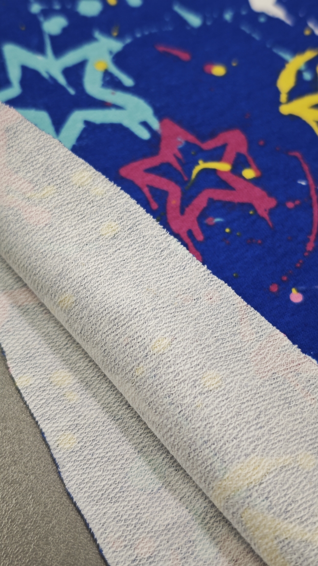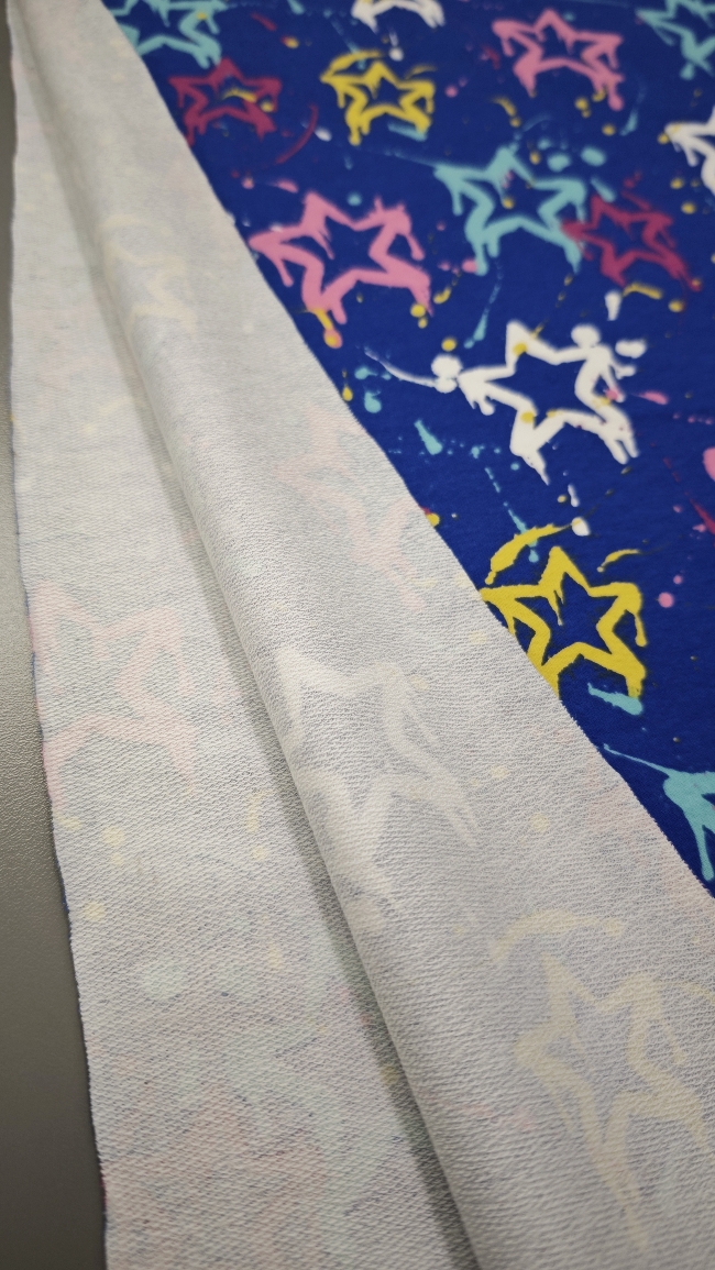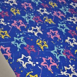 Ta prikupna otroška prevešanka v živahno modrem odtenku s pisanimi zvezdicami je popolna izbira za vse, kar mora biti mehko, udobno in prijetno na koži. Material je elastičen, lepo pada in je zelo prijazen za šivanje – idealen za začetnike in izkušene šivilje.