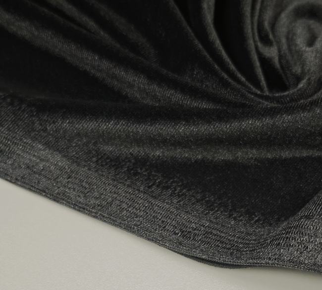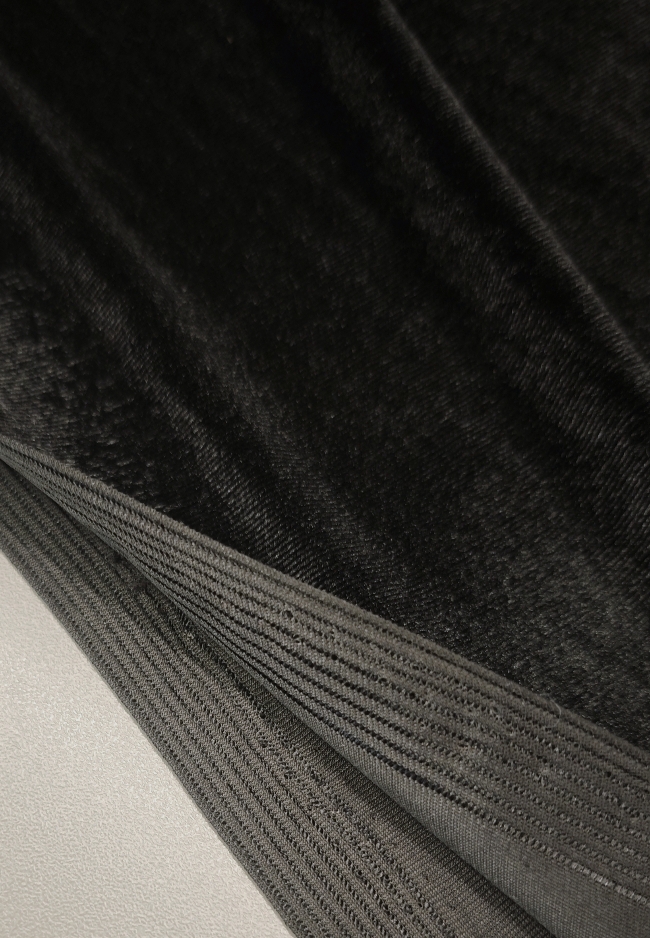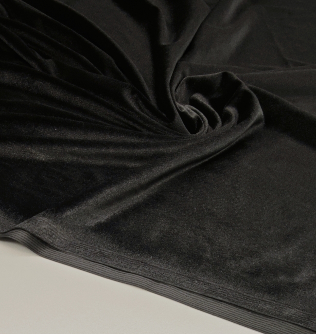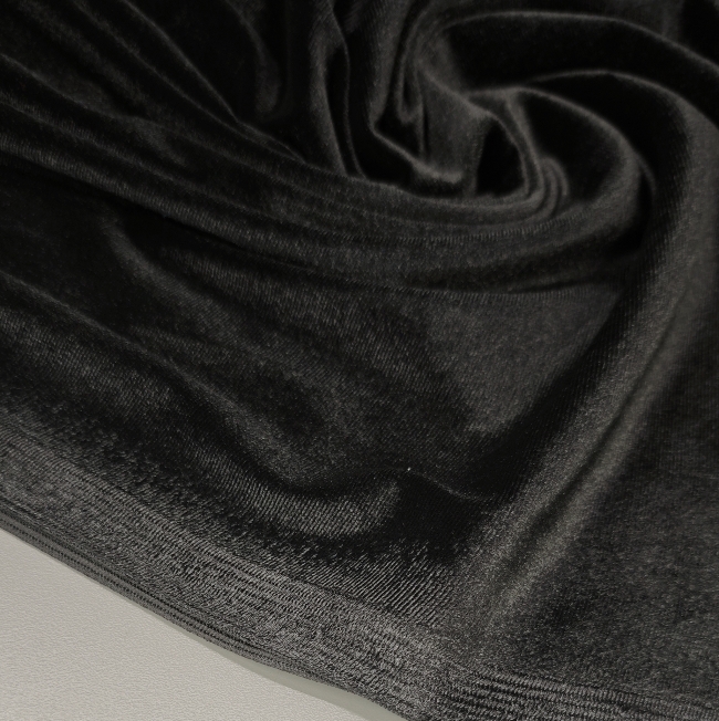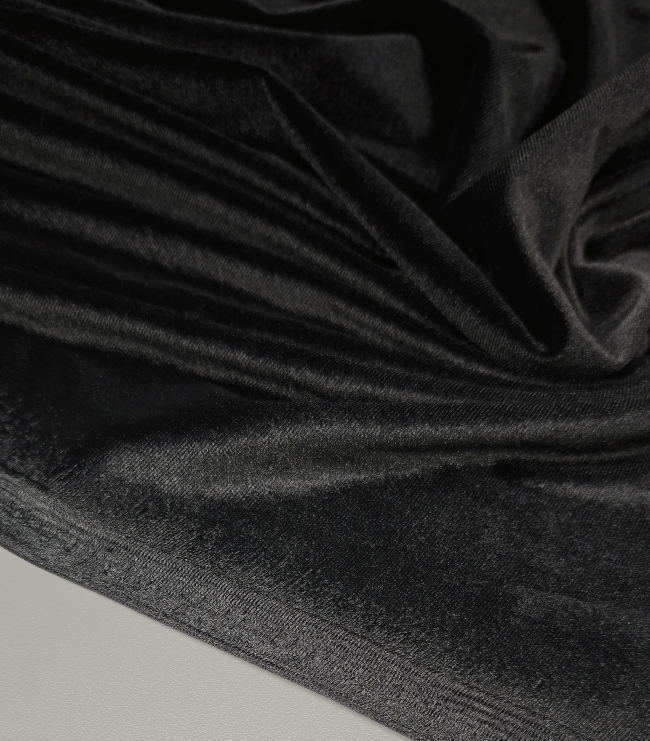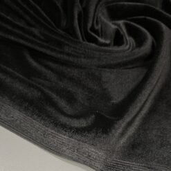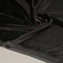 Ta razkošno mehak in prožen pliš v elegantni črni barvi je popolna izbira za udobna oblačila in modne dodatke. Zaradi elastičnosti se lepo prilega telesu, njegova žametna površina pa ustvarja prijeten občutek topline in nežnosti na koži.