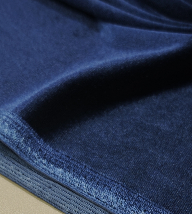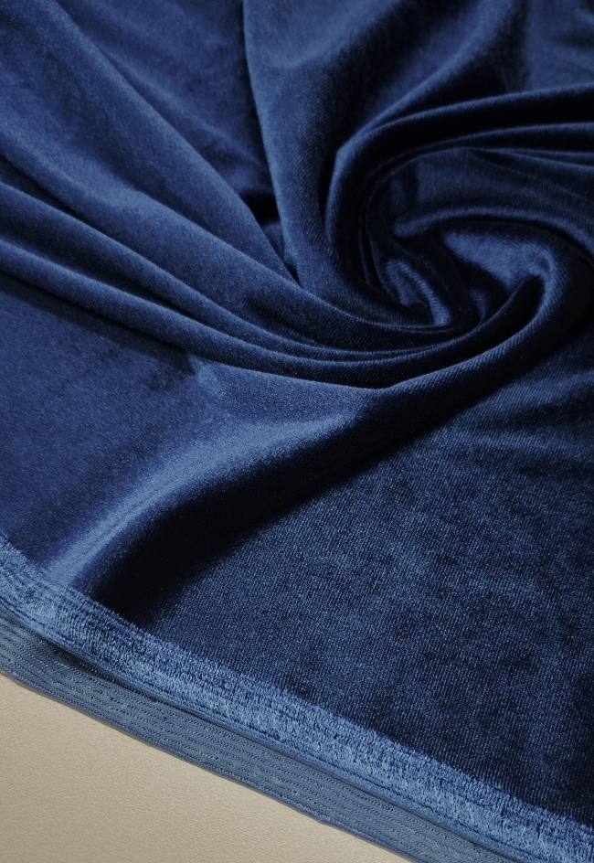 Ta čudovito mehak pliš v modri barvi navdušuje z nežnim leskom in elastično strukturo, ki se lepo prilega telesu. Zaradi svoje raztegljivosti in prijetnega otipa je idealen za šivanje udobnih oblačil, trenirk, jopic, otroških kompletov ali modnih dodatkov.