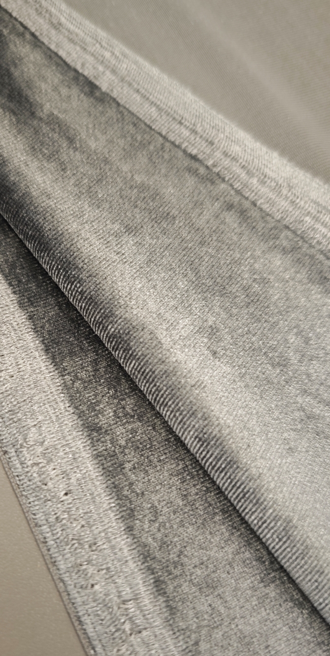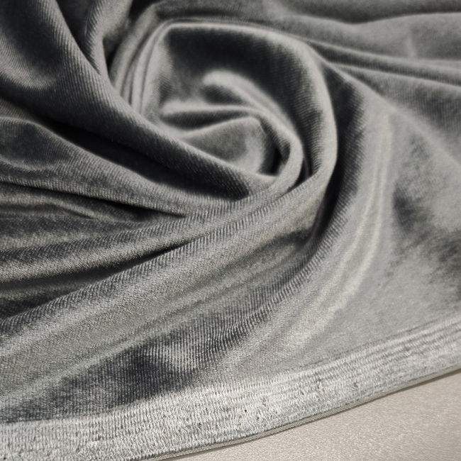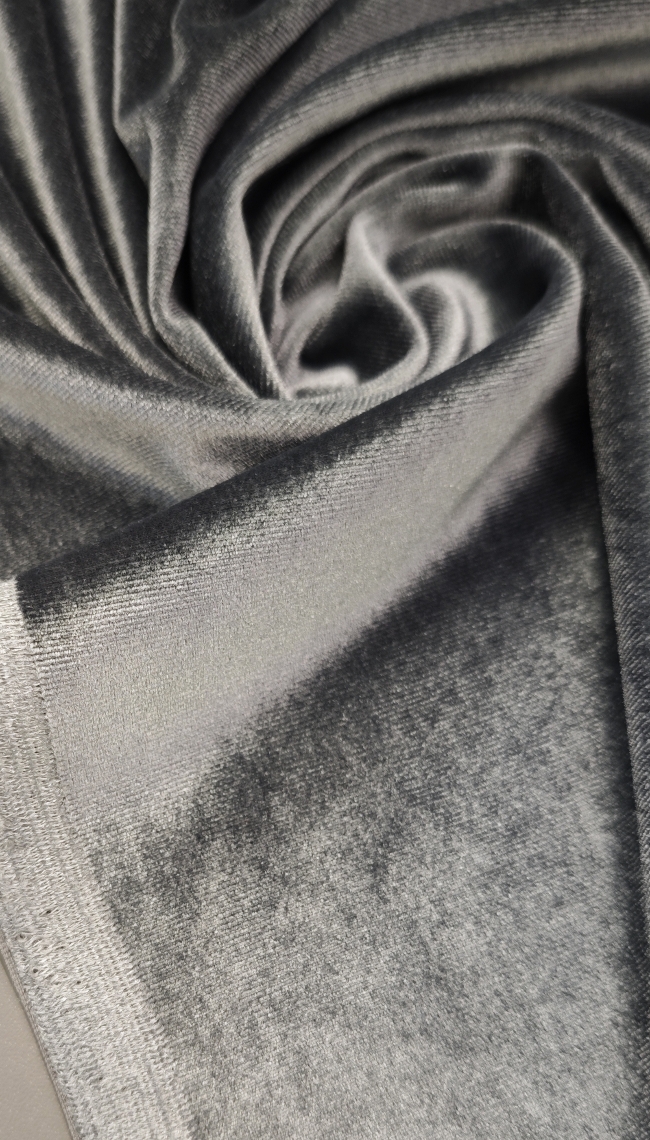 Če iščete tkanino, ki združuje udobje, elastičnost in trajnostni slog, je ta srebrno siv Velvet popolna izbira za ustvarjanje prestižnih, a praktičnih kosov oblačil in dekorativnih izdelkov.