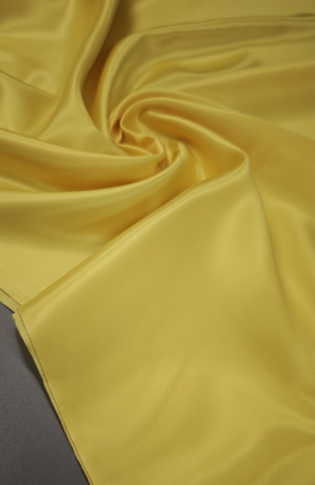 Ta lahkotna in sijoča atlas podloga v nežni rumeni barvi (105 g/m²) je popolna izbira za vse, ki želijo svojim oblačilom dodati udobje in prefinjen videz. Atlas je znan po svoji mehki in gladki površini, ki lepo drsi ob koži in hkrati omogoča, da se zunanja tkanina lepše prilega.