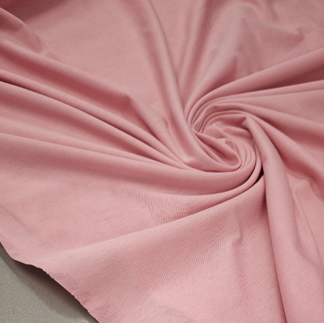Ta tanjši bombažni jersey z elastanom v nežno roza barvi je popolna izbira za udobna, mehka in zračna oblačila. Zaradi prijetne elastičnosti se lepo prilega telesu in zagotavlja popolno udobje pri nošenju.