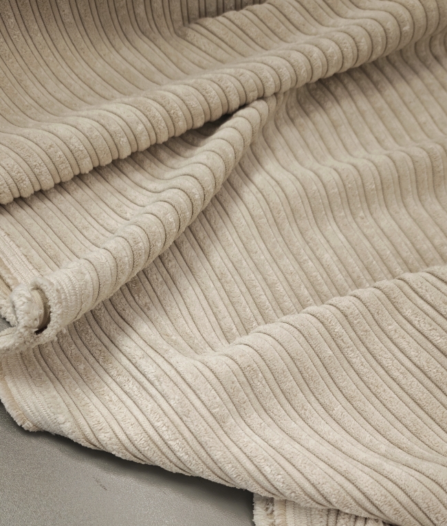 Ta čudovit rebrasti žamet v nežno bež odtenku navduši z izjemno mehkobo in toplino. Zaradi svoje goste, kompaktne strukture (300 g/m²) je idealen za jesensko-zimske projekte – od modnih jaken, kril in hlač do dekorativnih prevlek, blazin in elegantnih notranjih dodatkov.