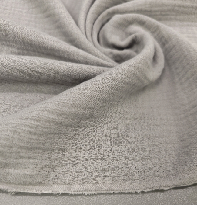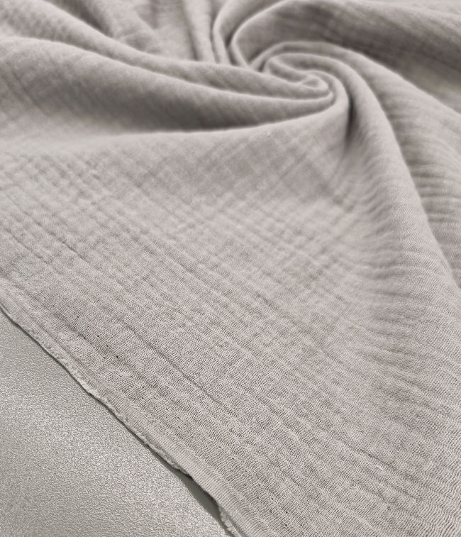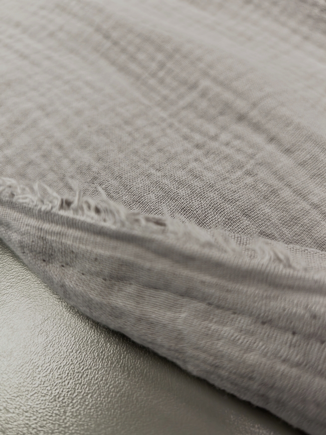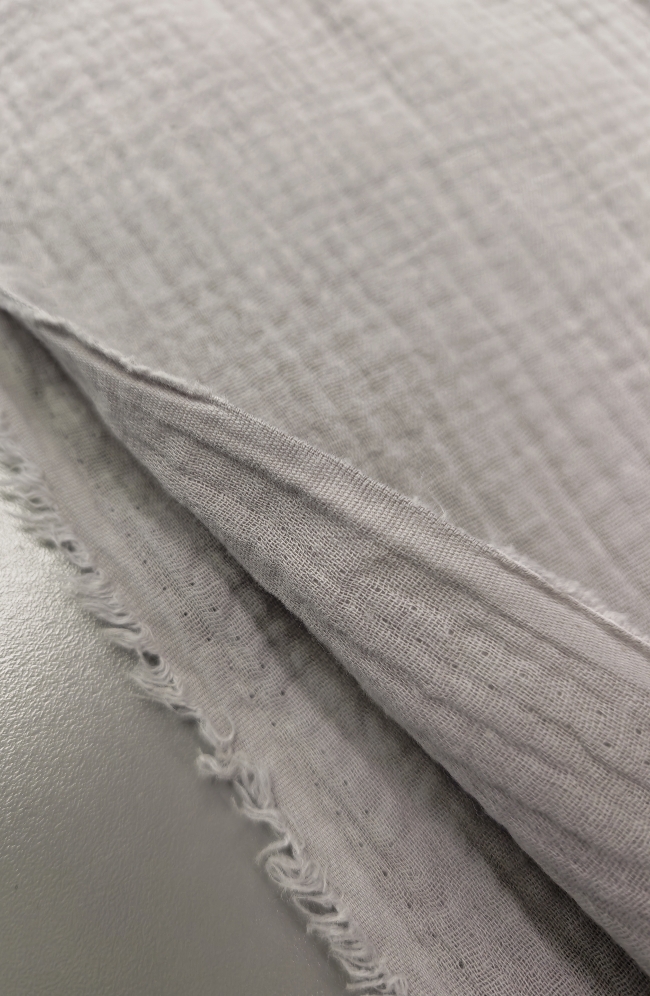 Dvoslojna tetra tkanina v sivi barvi je mehka, zračna in prijetna na dotik. Zaradi dveh plasti je bolj polna in kompaktna kot klasična enoslojna tetra, hkrati pa ostane lahka in zračna.