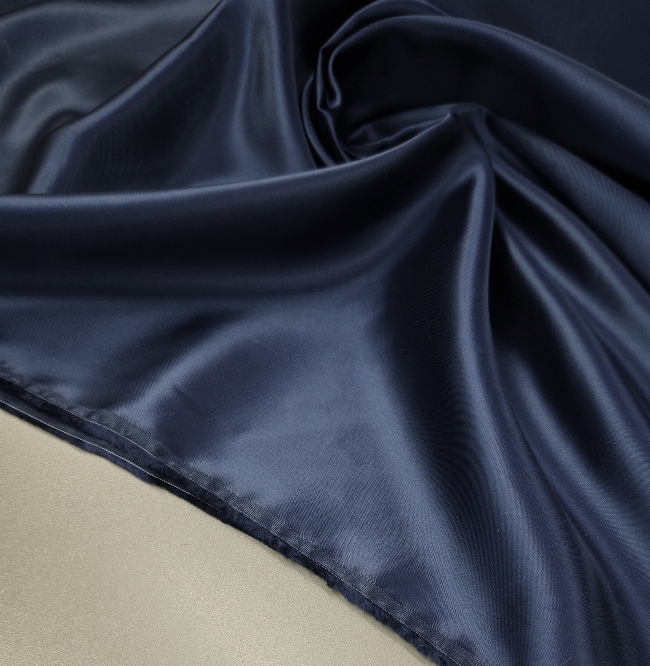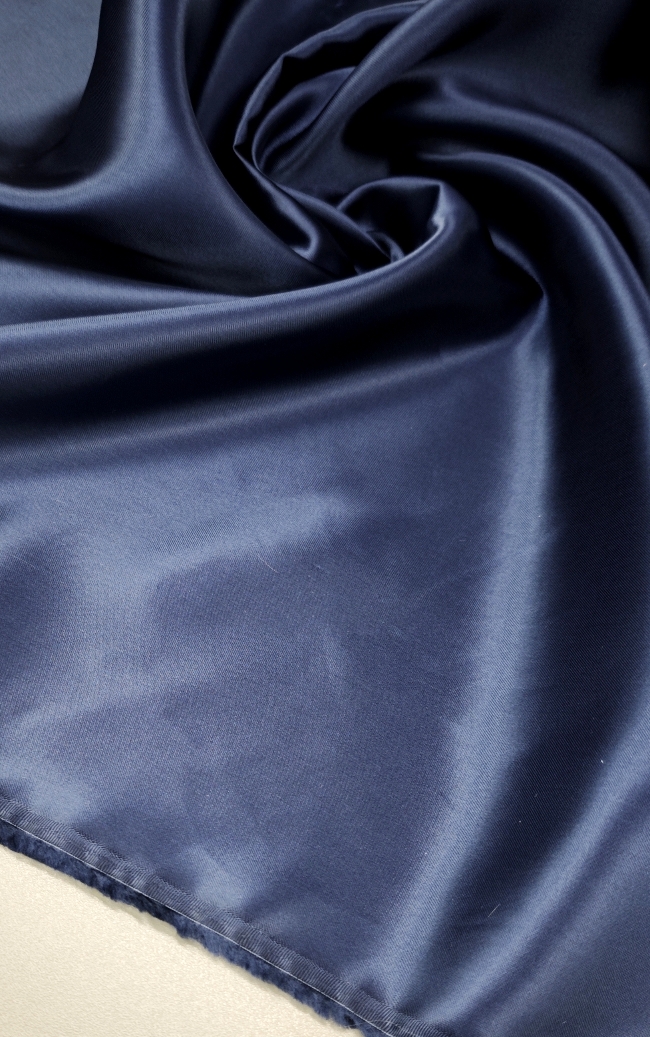 Ta elegantna atlas podloga v srednje modrem odtenku združuje gladko površino in sijoč lesk, ki doda pridih prestiža vsakemu kosu oblačila. Zaradi svoje prijetne teže lepo pade, hkrati pa zagotavlja udobje in obstojnost.