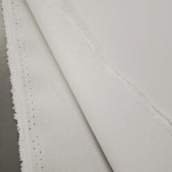 Tkanina je zračna, prijetna na otip in zelo praktična za vsakodnevno uporabo – ne mečka se in skoraj ne potrebuje likanja. Zaradi svoje obstojnosti in čiste bele barve se odlično kombinira z vsemi drugimi materiali in barvami.