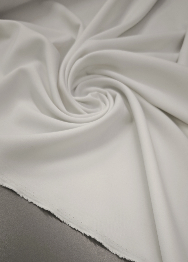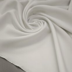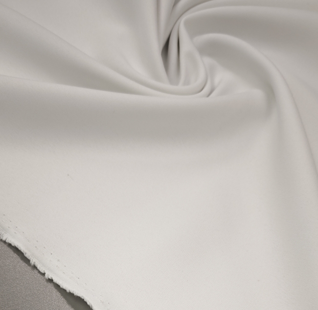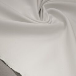Bela kostimska tkanina Minimat je klasična in vsestranska izbira za modne in poslovne kreacije. Lahek poliester z značilno drobno teksturo lepo pade in ohranja obliko, zato je idealen za kostime, hlače, krila ali elegantne suknjiče.