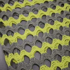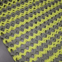 Ta atraktivna mrežasta tkanina v kombinaciji neon rumene in sive barve pritegne pozornost že na prvi pogled. Zaradi prožnosti in lahkotne strukture je odlična izbira za modne dodatke, športna oblačila, kostume, dekoracije in ustvarjalne DIY projekte.