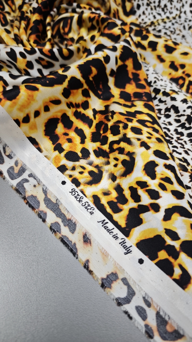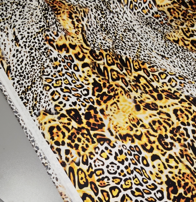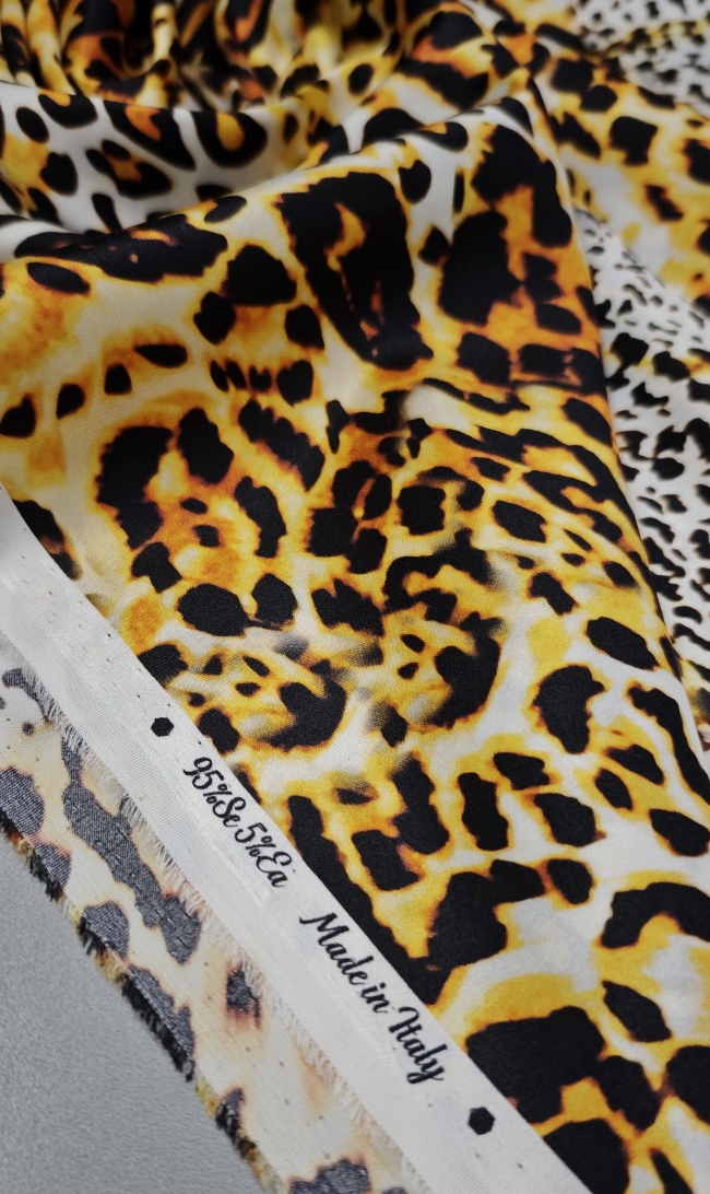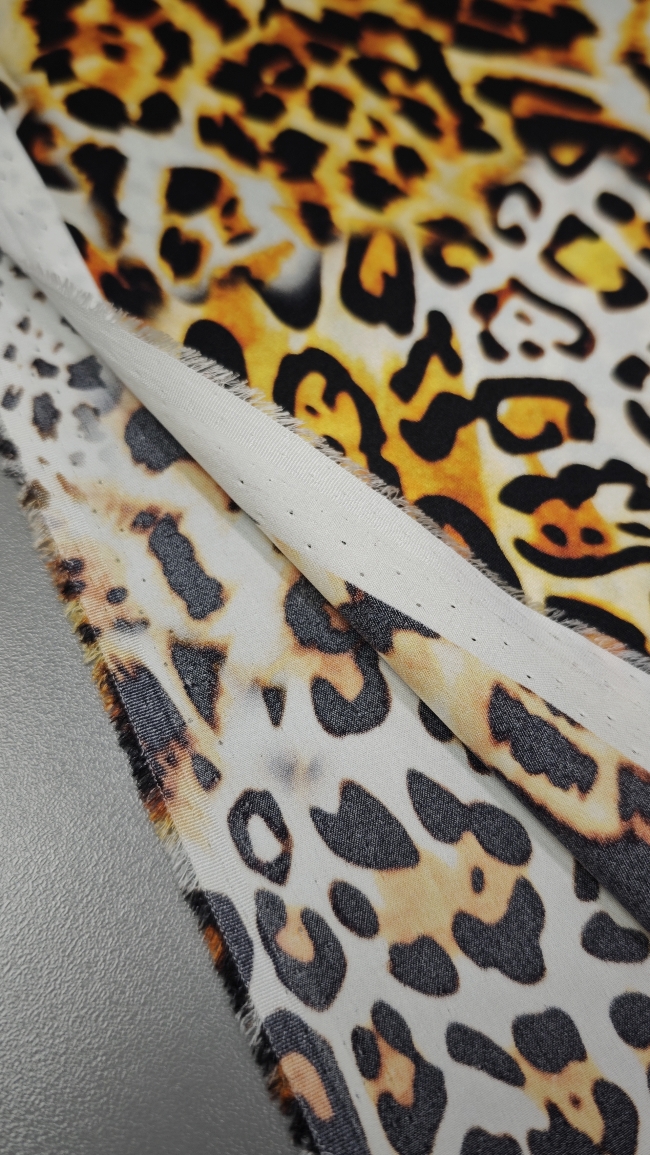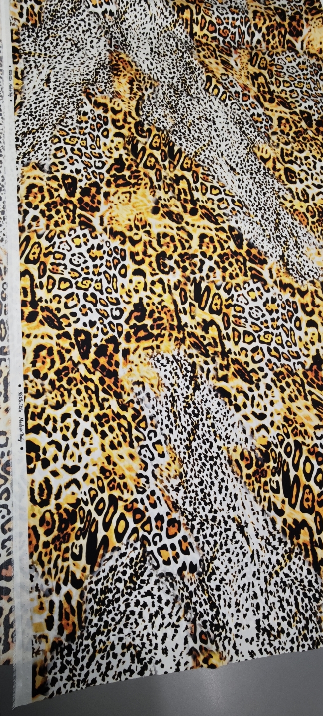 Primerna za obleke, bluze, srajce, krila, tunike in modne kose, kjer pride do izraza izrazit leopardji vzorec in eleganten satenast sijaj.