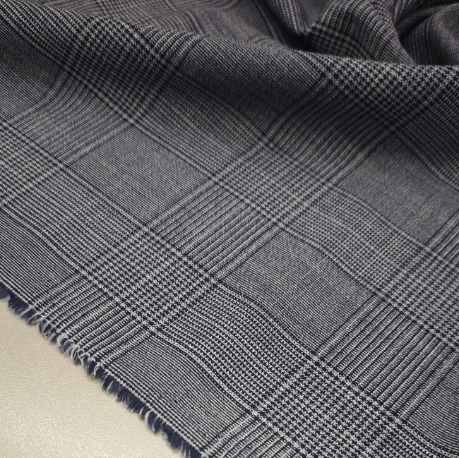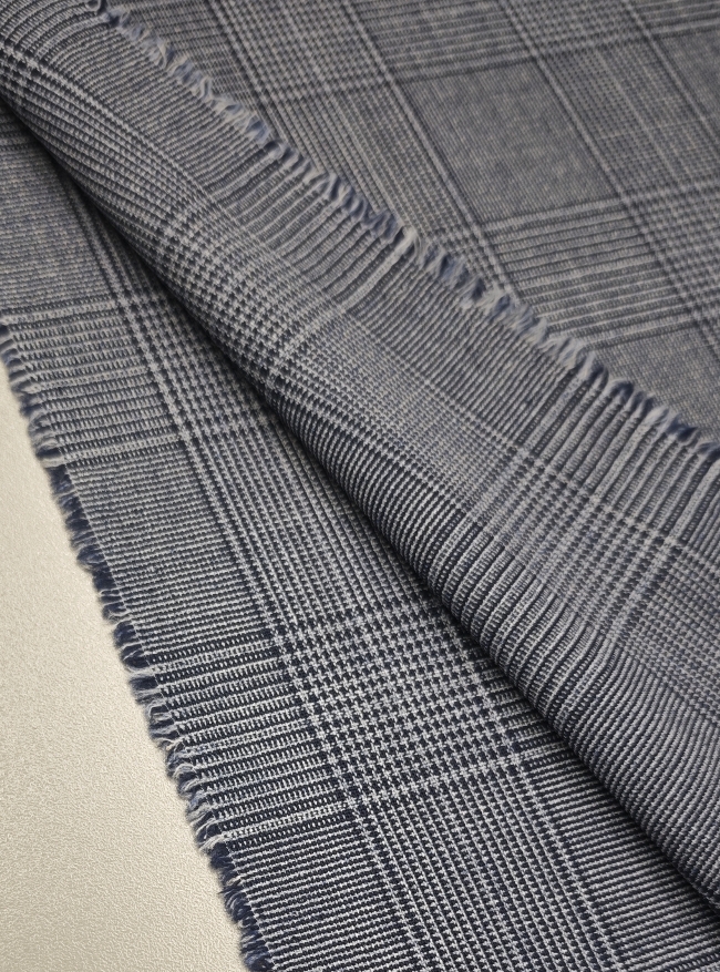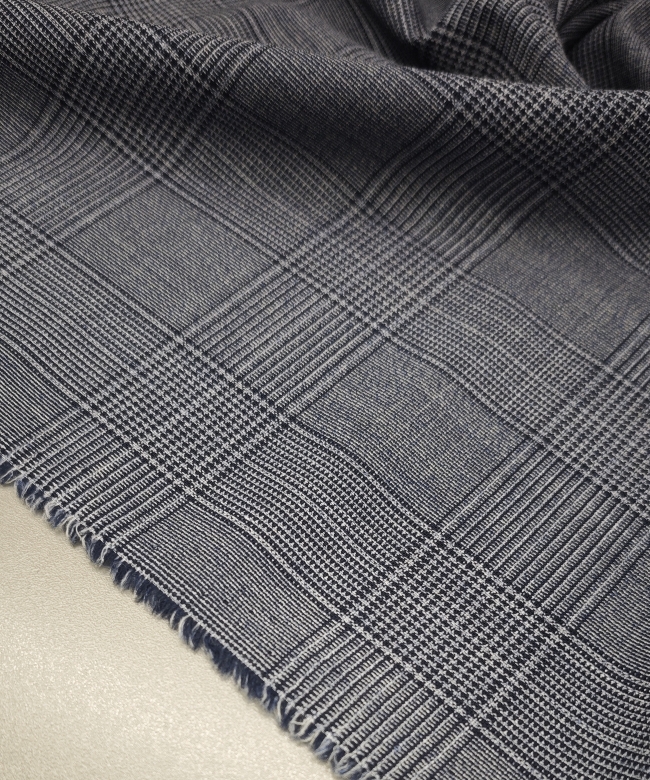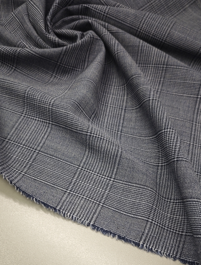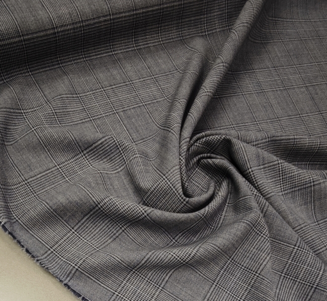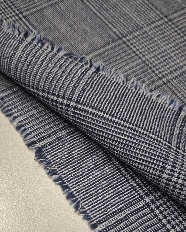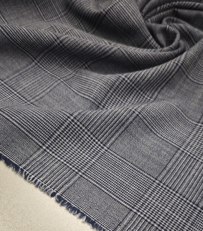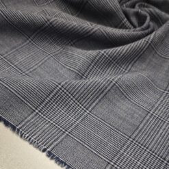 Ta klasična karirana tkanina v modro-sivih tonih združuje prefinjen videz in vsestransko uporabnost. Srednja teža 175 g/m² zagotavlja udobje pri nošenju, hkrati pa lepo drži obliko, kar jo naredi idealno za izdelavo kostimov, suknjičev, kril in elegantnih hlač.