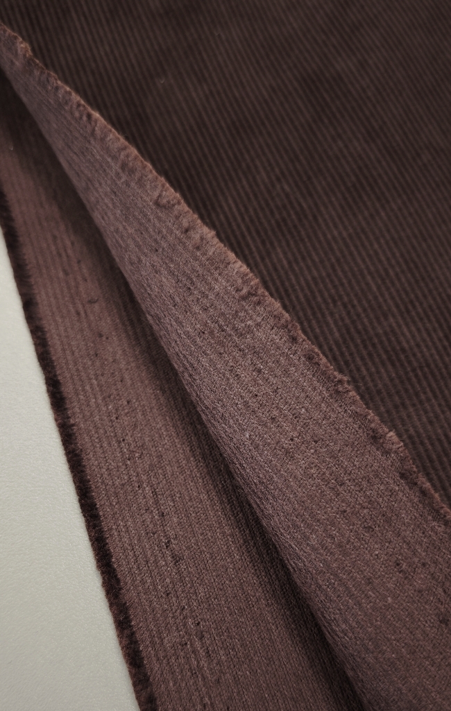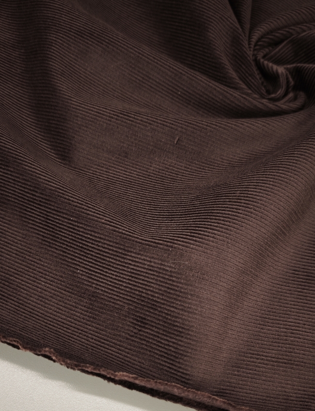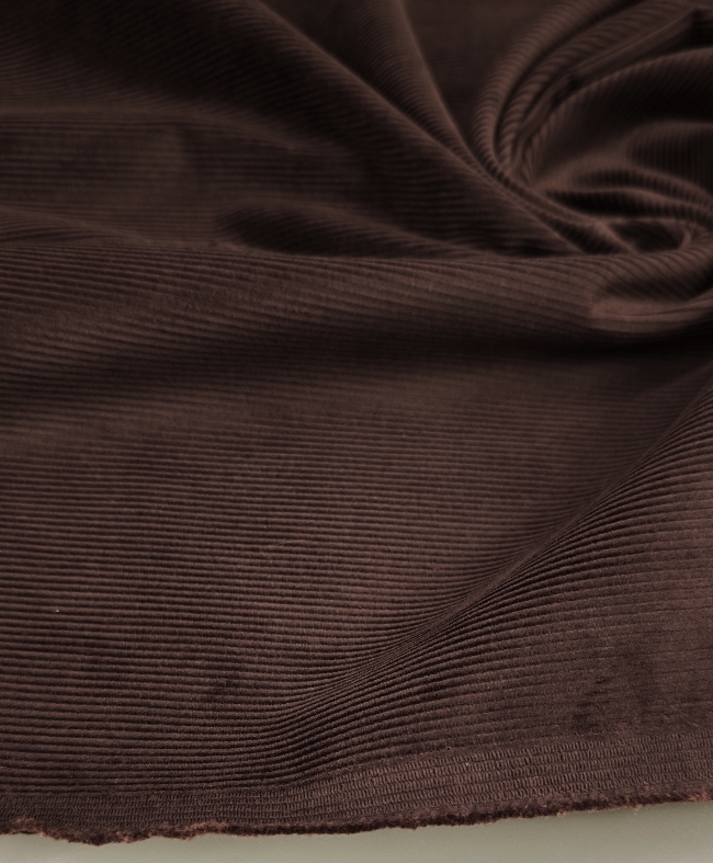 Topel, mehak in udoben – ta čokoladno rjav rebrasti bombažni žamet očara z naravno mehkobo in prijetno toplino. Rebrasta struktura mu daje značilen videz, ki lepo pade in se odlično oblikuje.