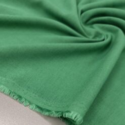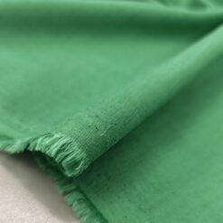 Lahkotna bombažno-lanena tkanina v sveži travniško zeleni barvi. Tanka, zračna in prijetna na dotik, z naravno teksturo in mat videzom.