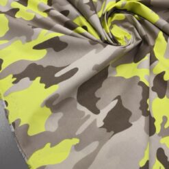 Izjemno lahko platno (125 g/m²) s sodobnim neonskim kamuflažnim potiskom, ki pritegne vsak pogled! Mehko, zračno in prijetno na otip – idealno za poletna oblačila, modne dodatke, dekoracije ali ustvarjalne projekte. Zaradi svoje lahkotnosti se odlično šiva in lepo pada.