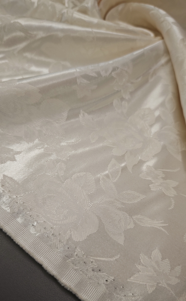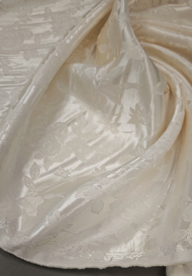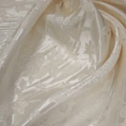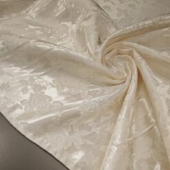Ta žakard v barvi šampanjca navduši z nežnim leskom in prefinjeno teksturo, ki daje vsakemu kosu pridih elegance. Idealen je za obleke, krila, suknjiče ali lahke plašče, kjer želite doseči prefinjen, rahlo svečan videz. Zaradi svoje kakovostne strukture se lepo oblikuje in pada, zato je primeren tudi za modne dodatke ali dekorativne projekte, kjer želite dodati pridih razkošja.