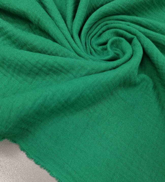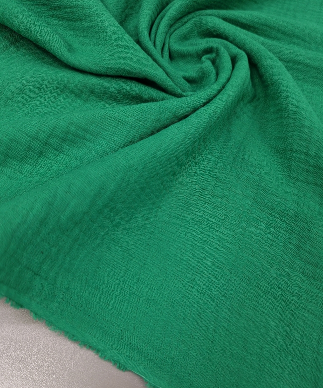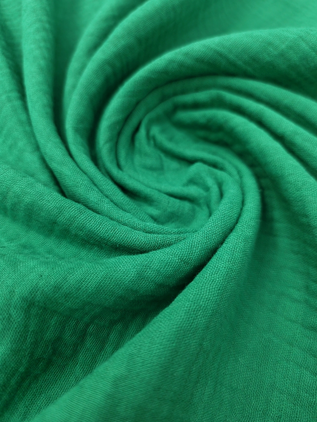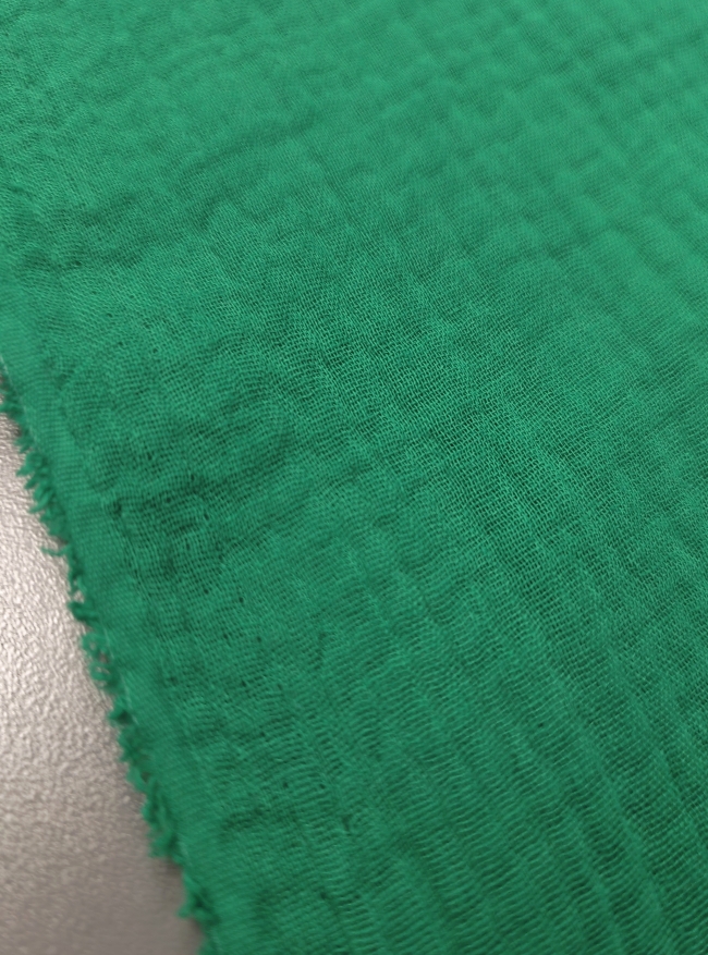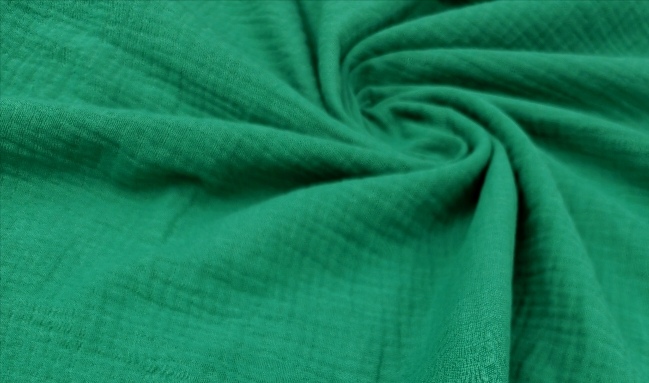 Mehka, zračna dvoslojna bombažna tetra v sveži zeleni barvi. Zaradi naravne sestave je prijetna na koži, dobro diha in lepo vpija vlago.